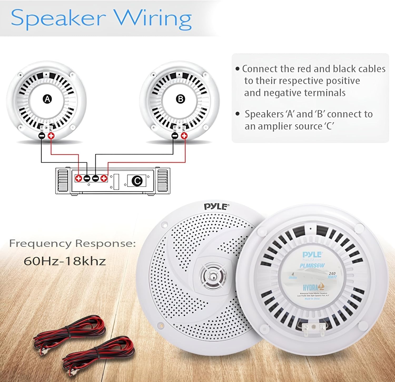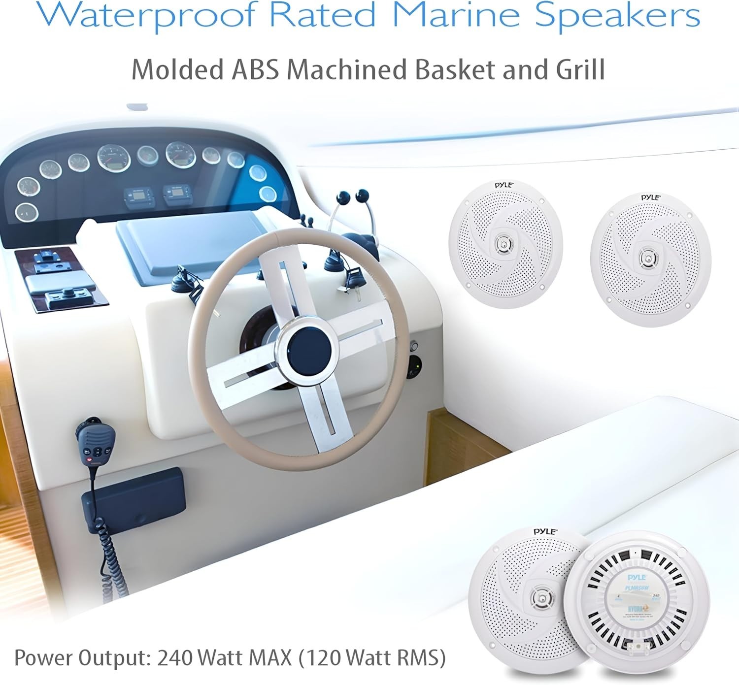 Pyle Marine Speakers - 6.5 2 Way Waterproof Weather Resistant, 240 Watt