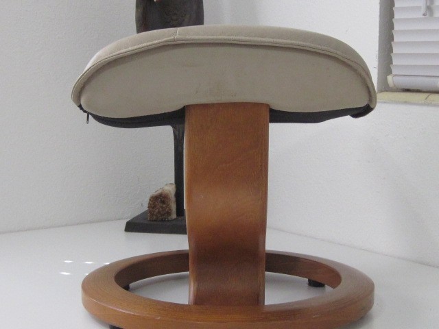 Ekornes Stressless Ottoman Tan Leather on Teak wood hassock footrest chair 6S