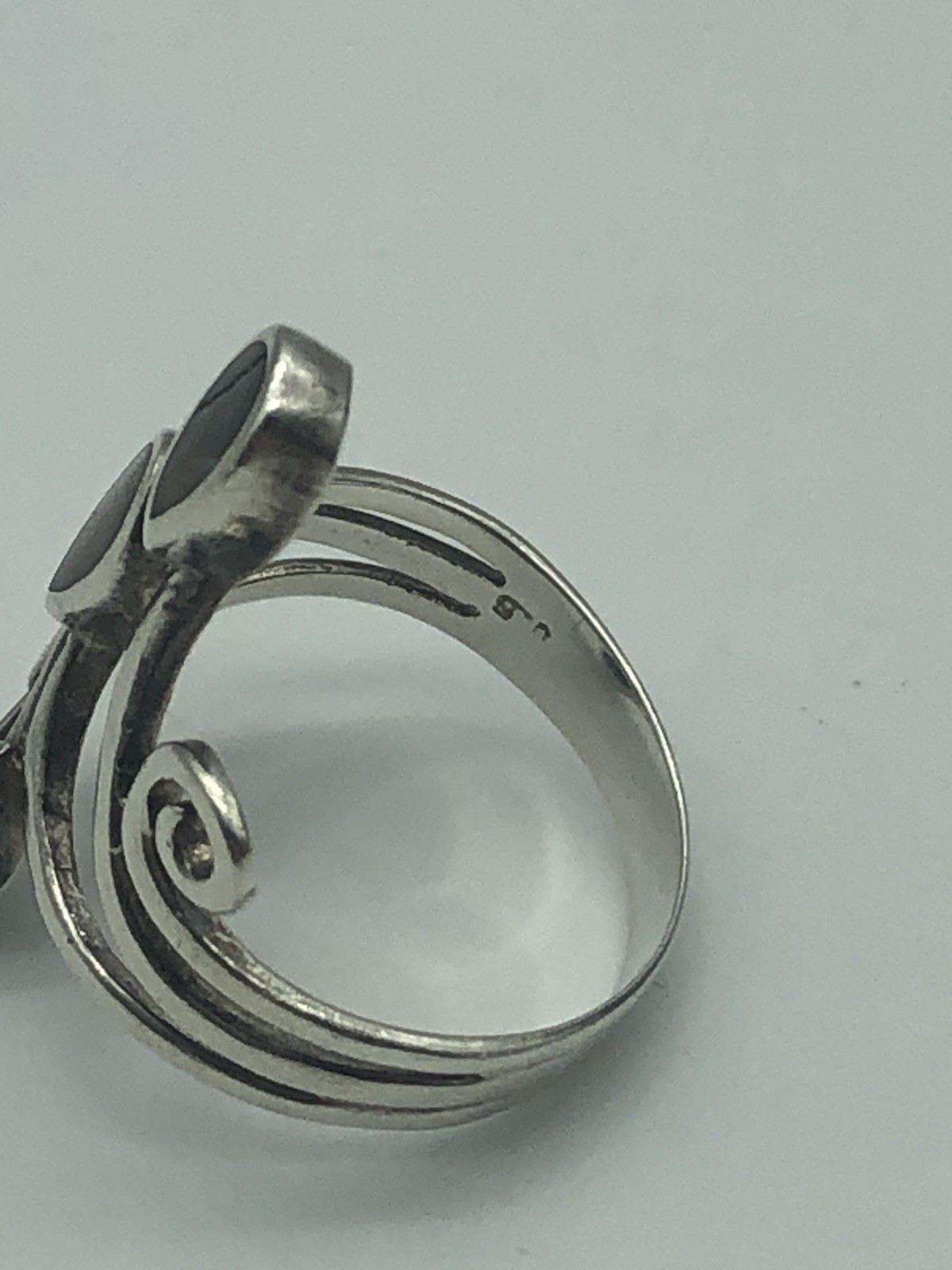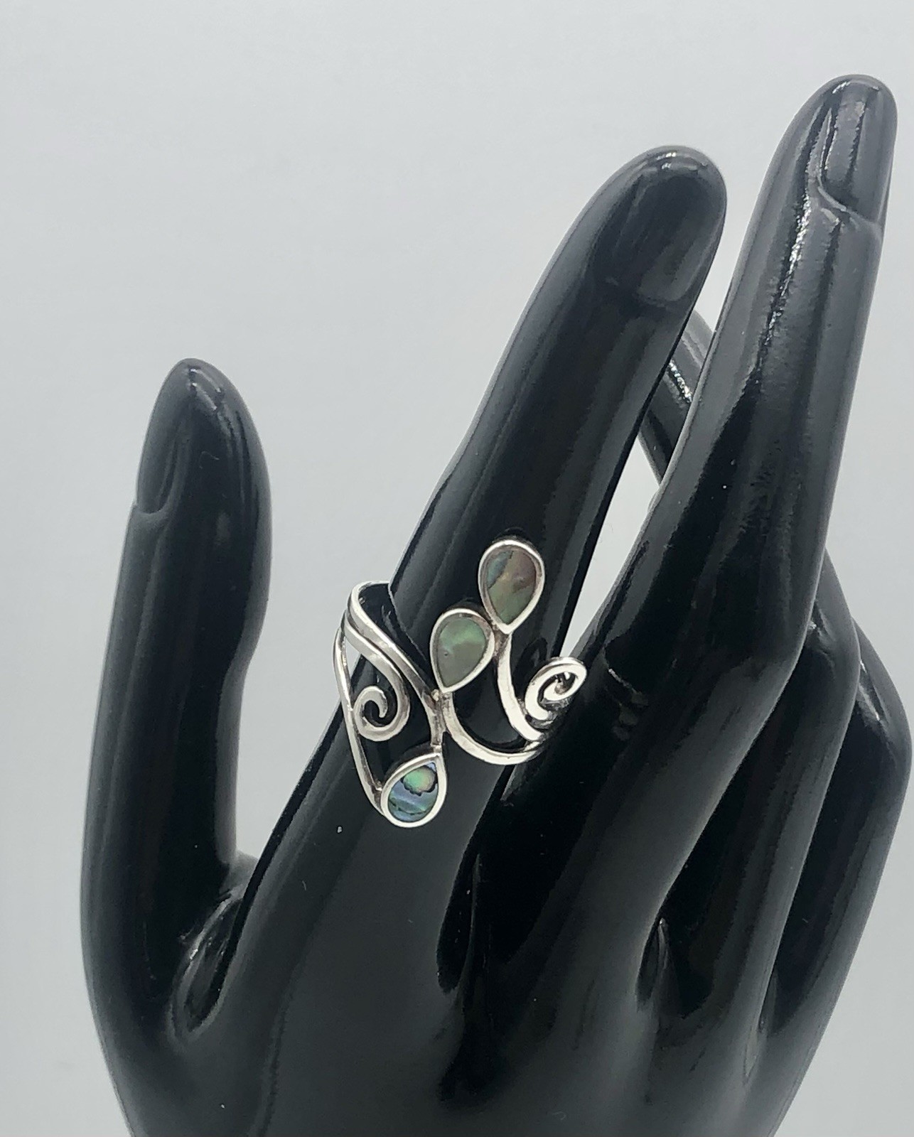 как выглядит Abalone Sterling Silver Ring. Three Teardrops Set In A Swirl Design Sz 8 фото