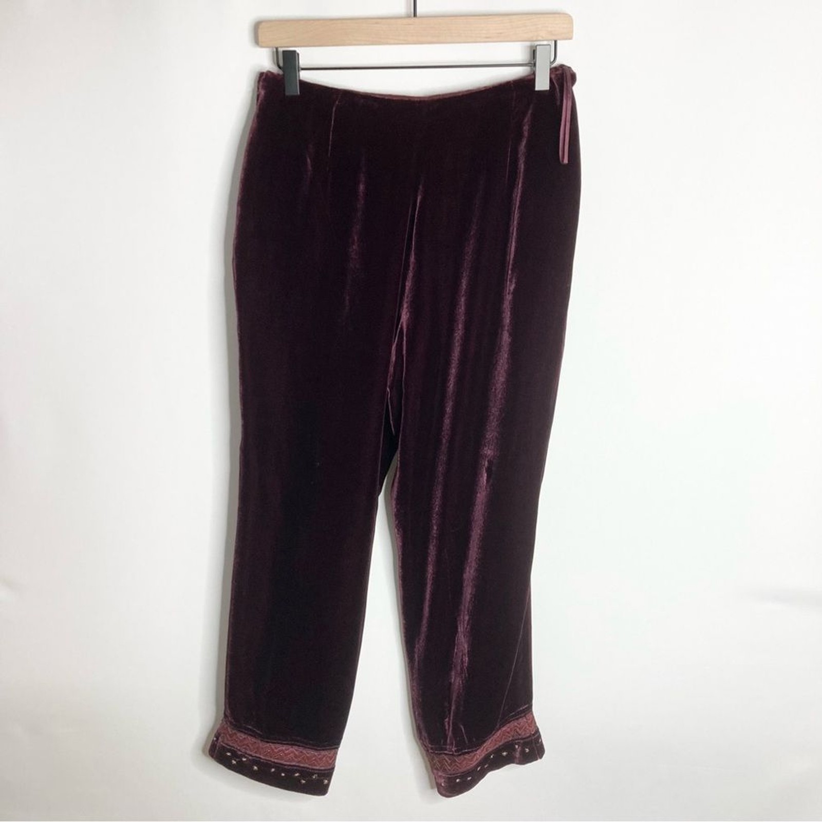как выглядит Vintage Ralph Ralph Lauren Burgundy Velvet Cropped Pants Beaded Size 8 Medium фото