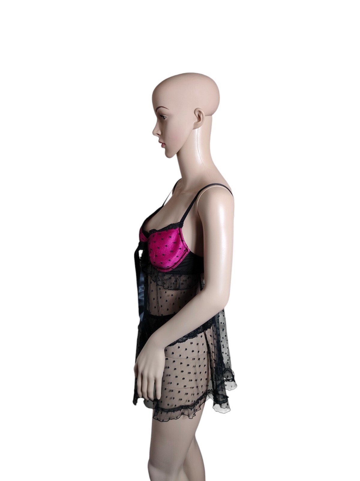Victoria Secret Babydoll Chemise Women's 36C Vintage Y2K Mesh Ruffled Romantic
