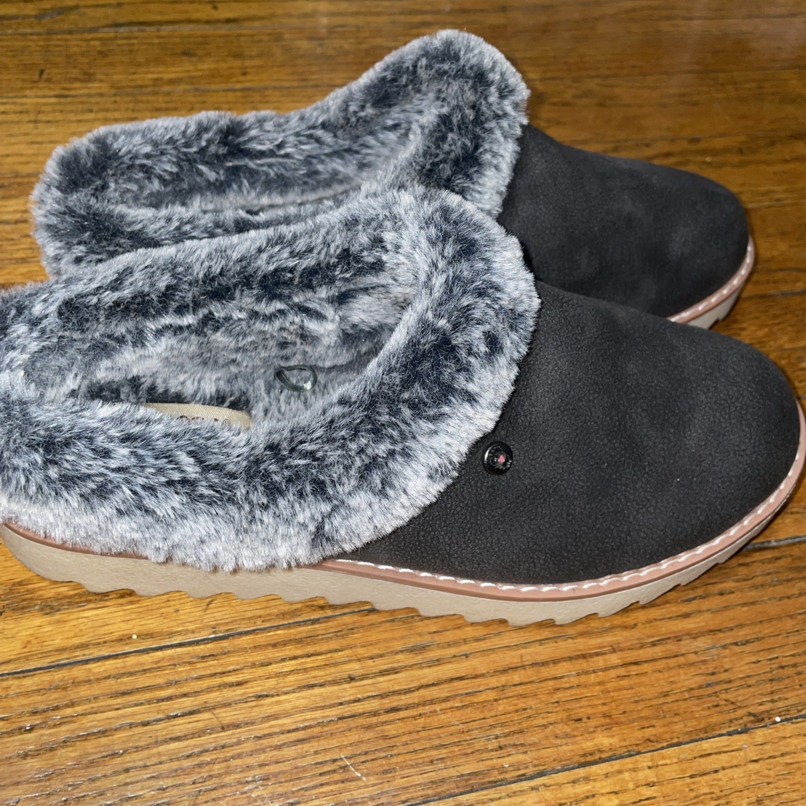 как выглядит SKECHERS BOBS KEEPSAKES LITE COZY BLEND FUR SLIPPER WOMEN SHOES GRAY SIZE 7 фото