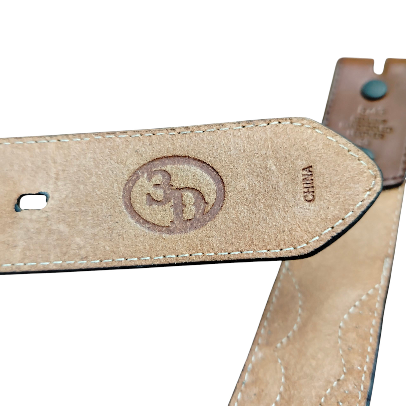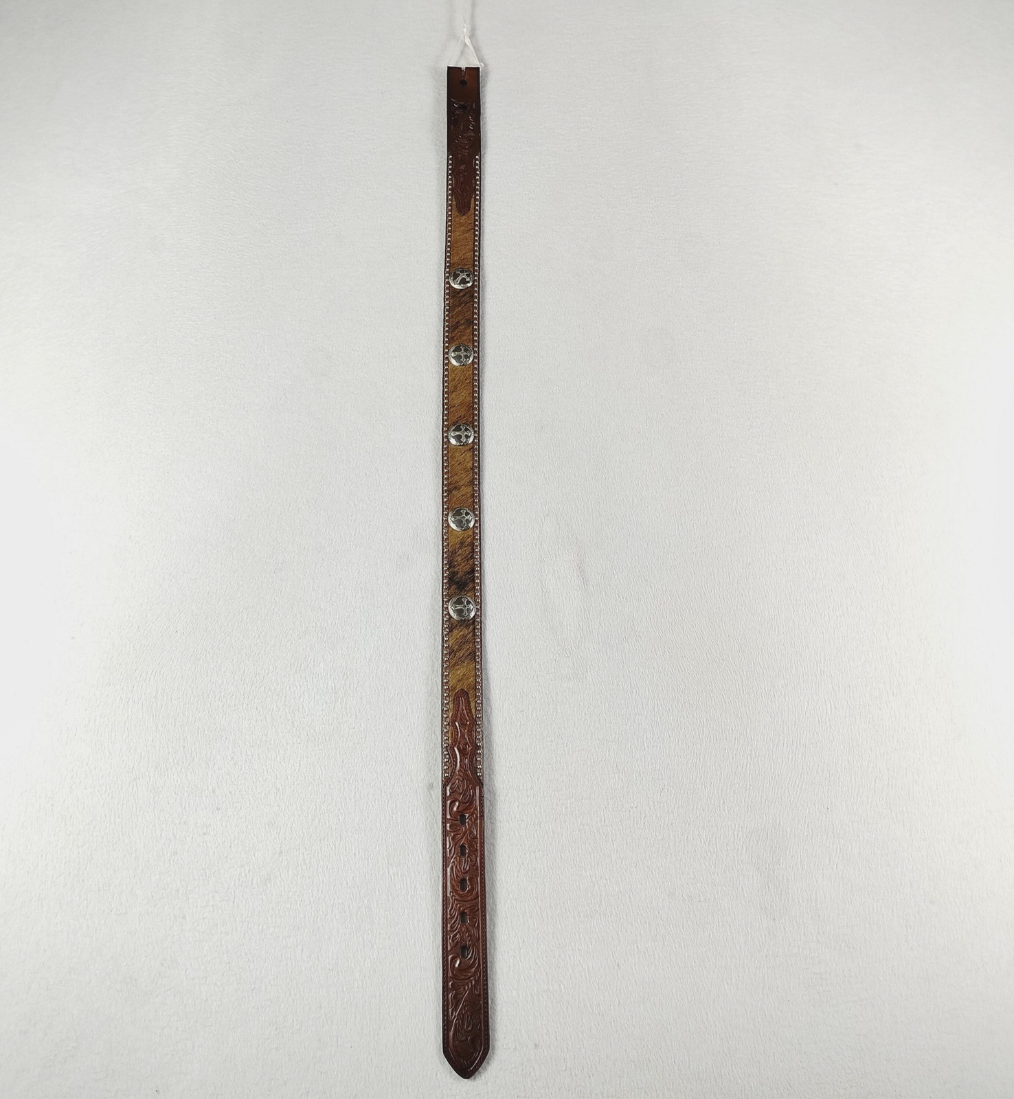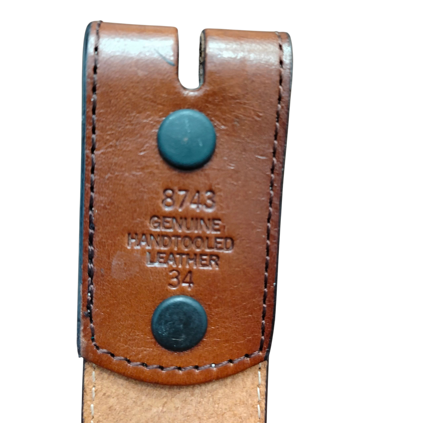 3D Belt Men's 34 Brown Hand Tooled Western Concho Studded Hair Westerncore Rodeo