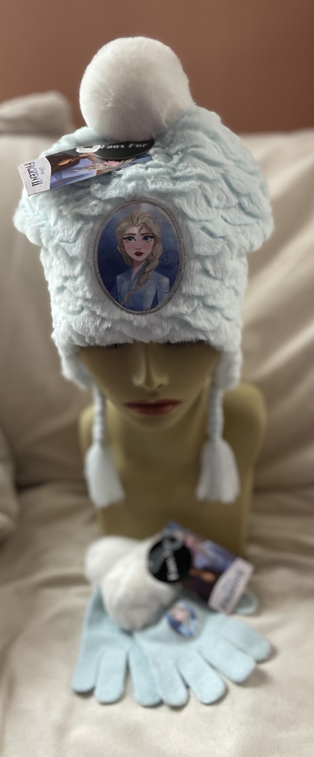 Disney Frozen 2 Elsa Beanie Gloves Girls Winter Hat Faux Fur OSFM One Size New