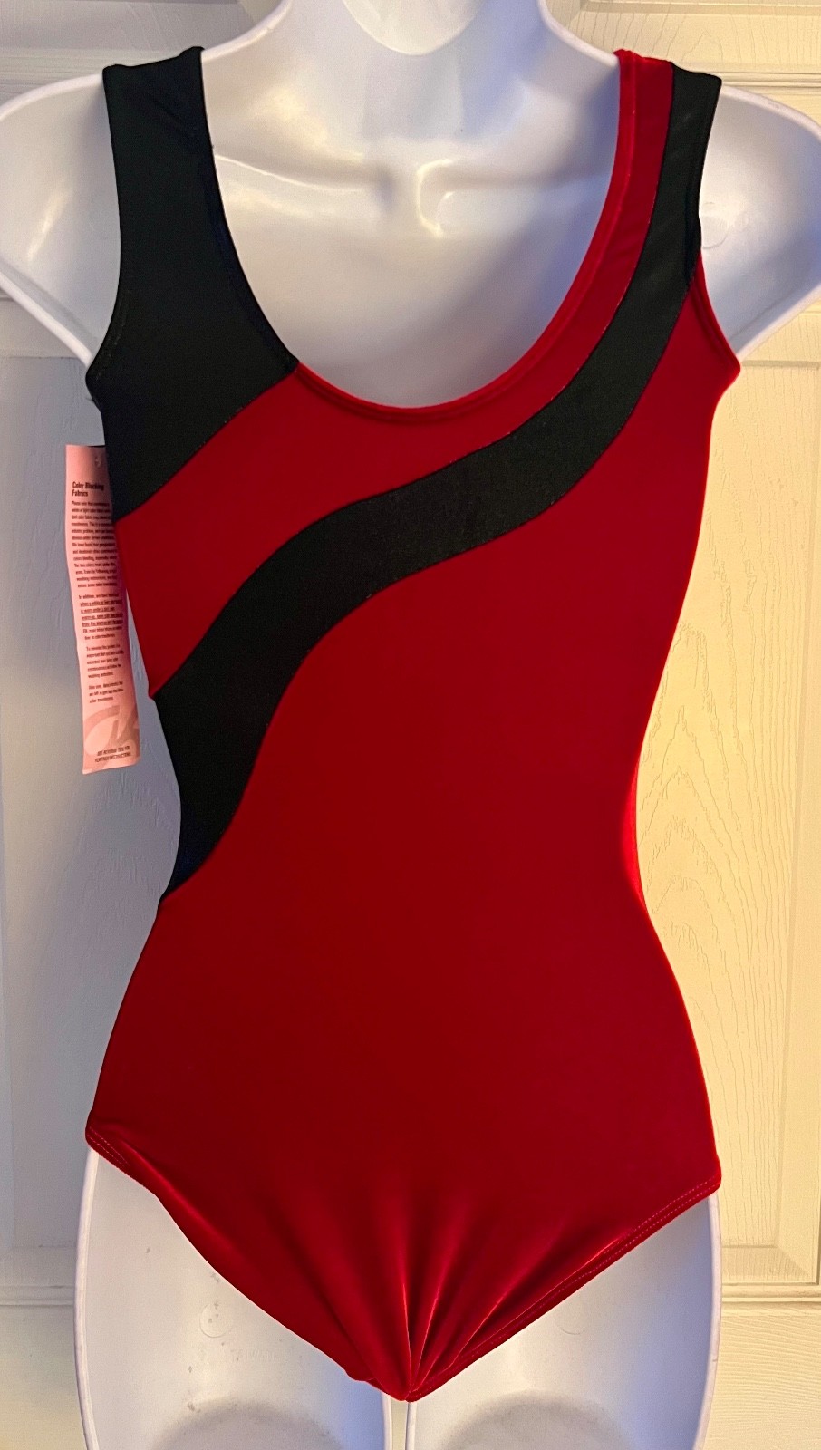 GK RED VELVET LADIES X-SMALL BLACK FOIL LINES JA GYMNASTIC DANCE TANK LEOTARD XS