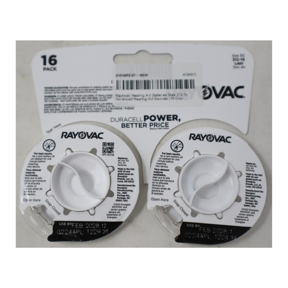 16 Pack - Rayovac Size 312 Zinc Air Hearing Aid Batteries EXP Feb 2028 Opened