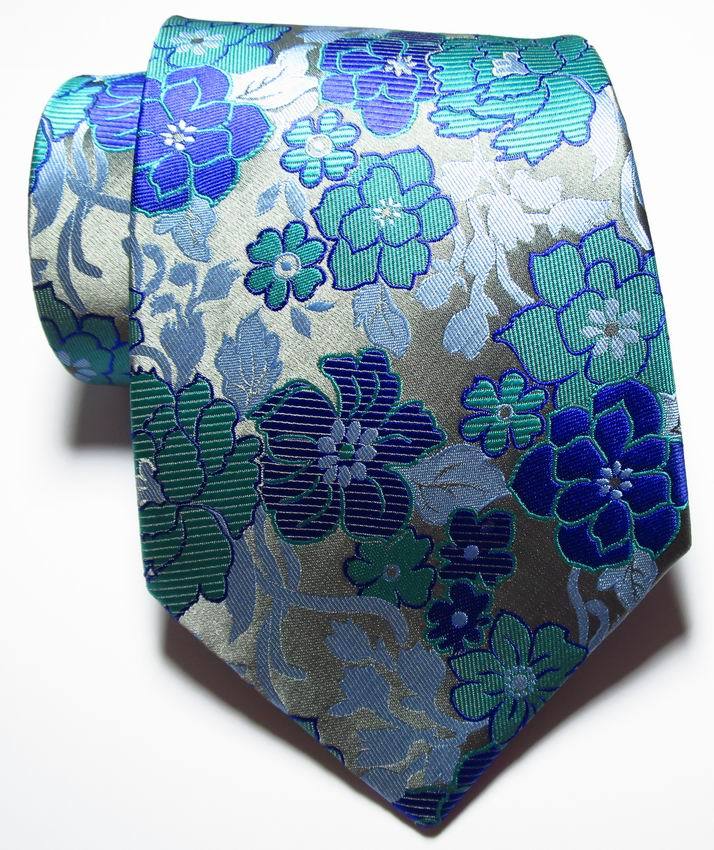 New Classic Floral Blue Gray Silver JACQUARD WOVEN Silk Men's Tie Necktie