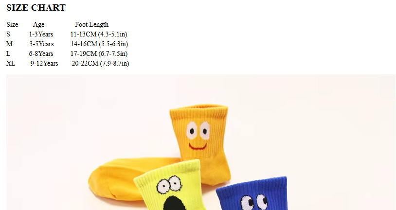 5 Pairs Kids Socks Cute Funny Face Emoticons Pattern Comfortable Breathable Boys