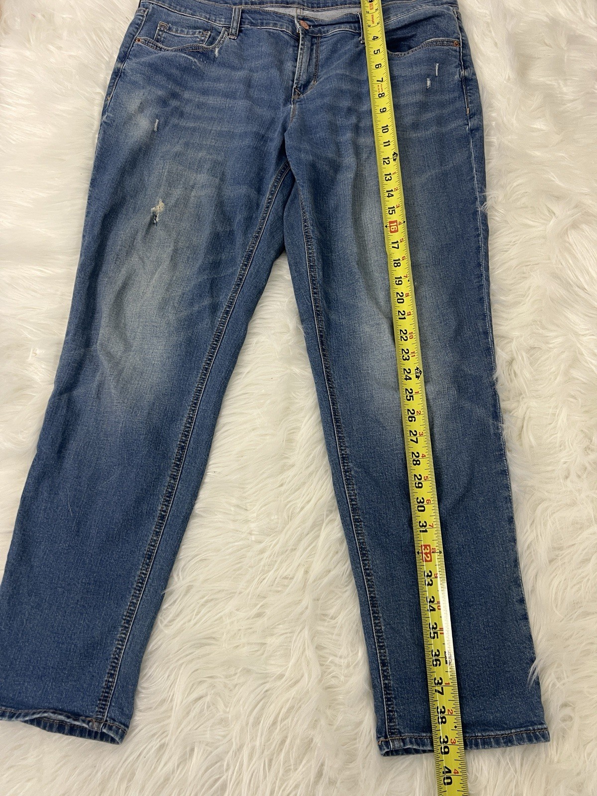 как выглядит Old Navy Boyfriend Skinny Women size 12 Medium Wash Blue Distressed Denim Jeans фото