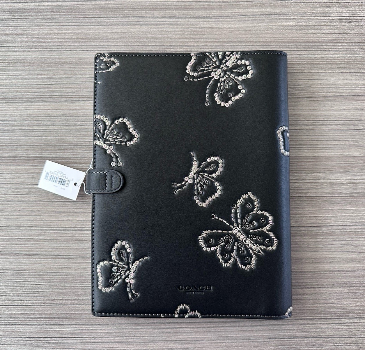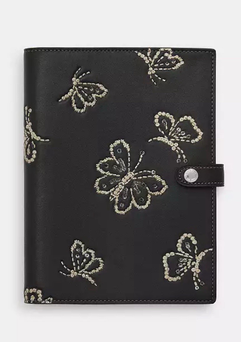 NWT Coach Notebook With Embroidered Butterfly Print Silver / Black Multi CCF42
