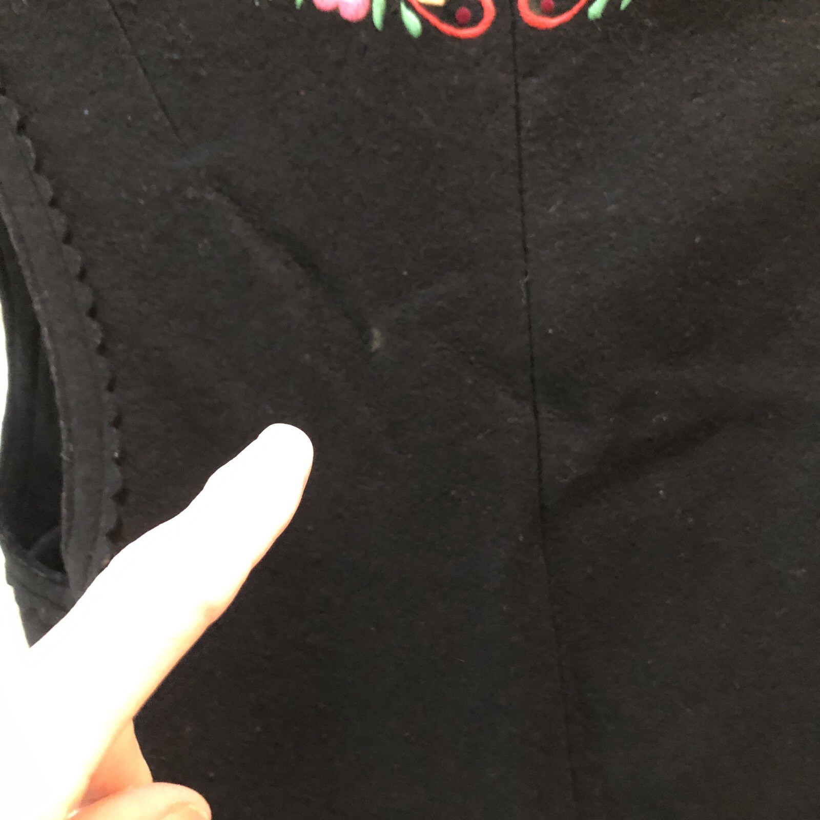 как выглядит VTG Hungarian Hand Stitched Matyo Floral Embroidered Long Vest Black Felt Small фото