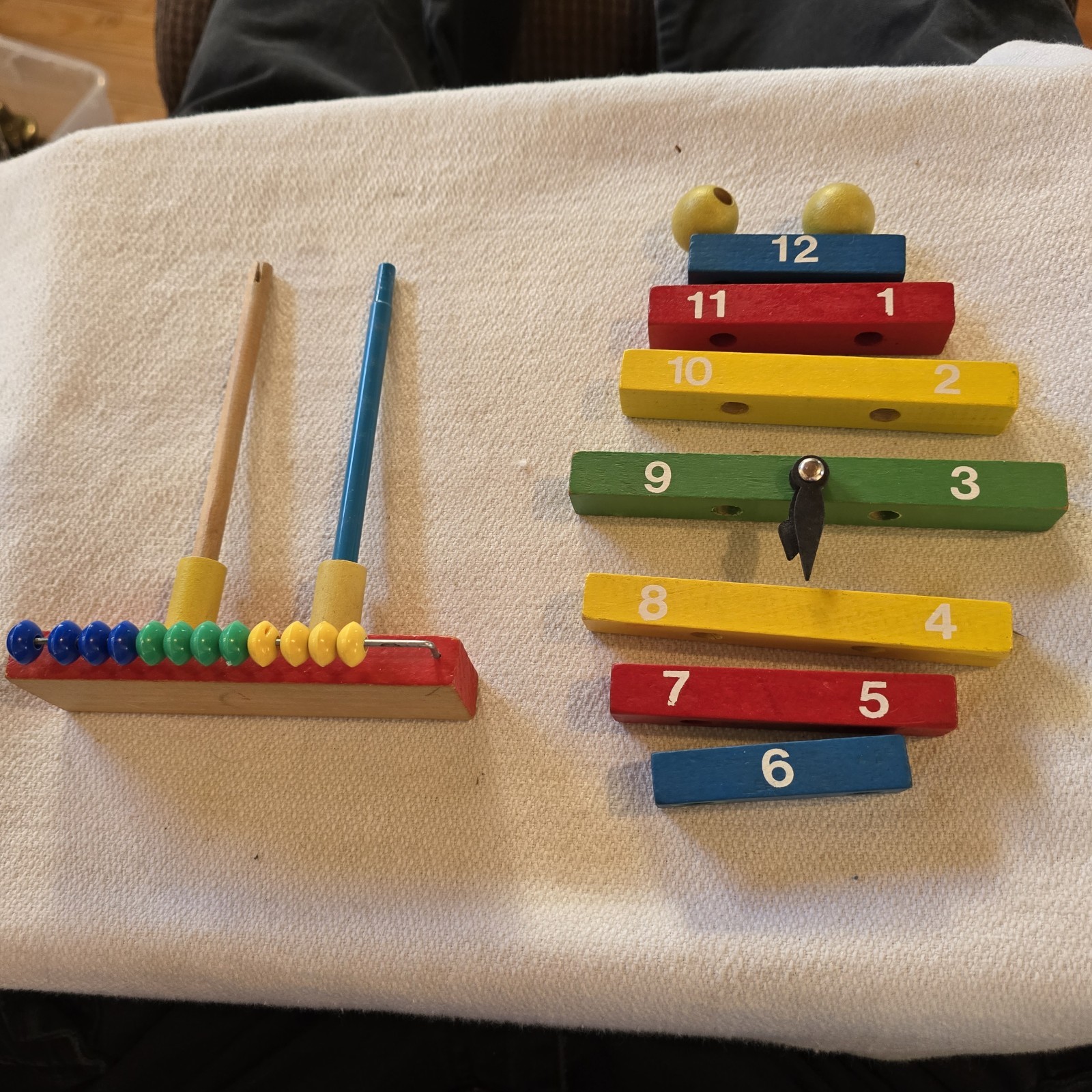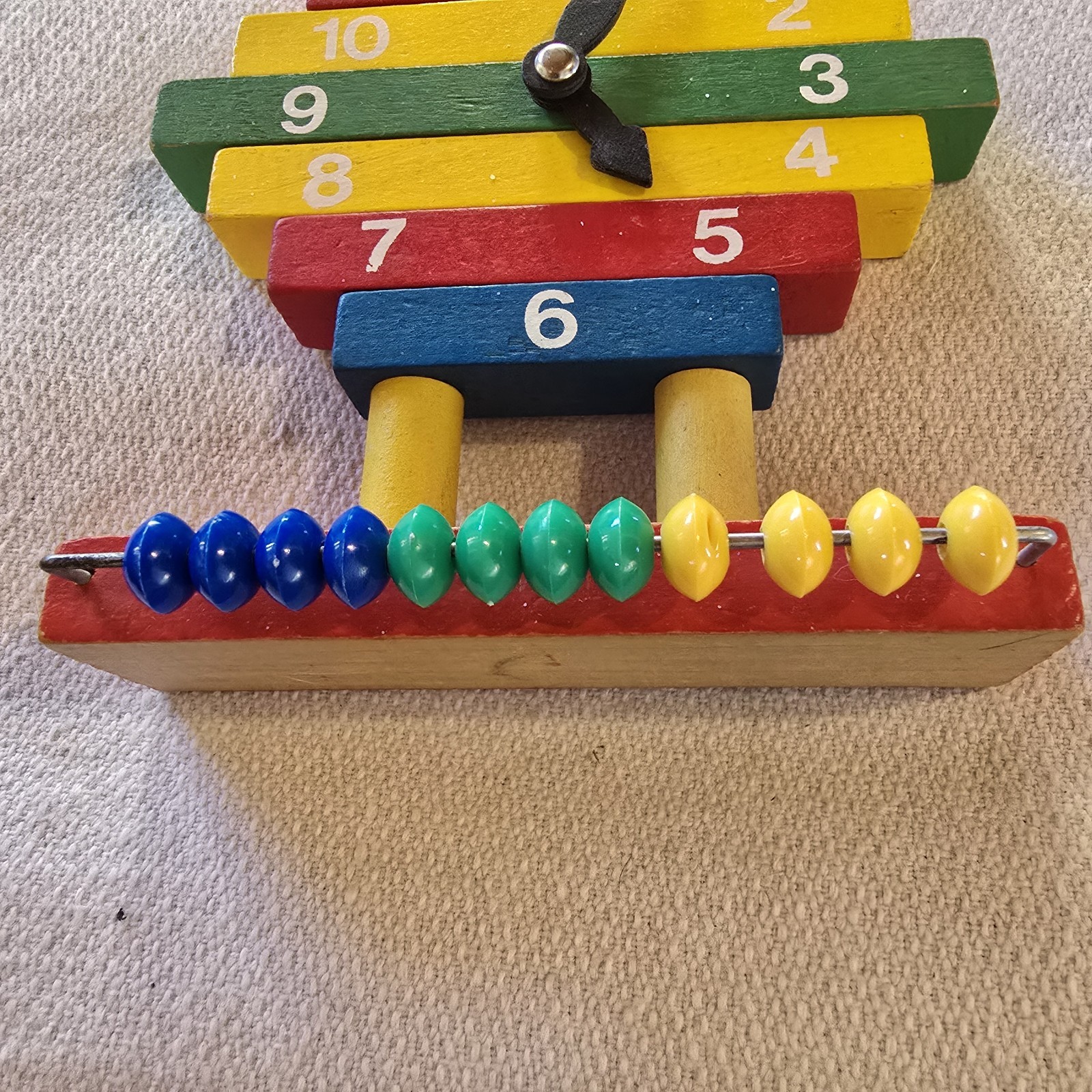 как выглядит Vintage Wooden Kids Learning Clock Toy with Abacus  Colorful Number Puzzle ... фото