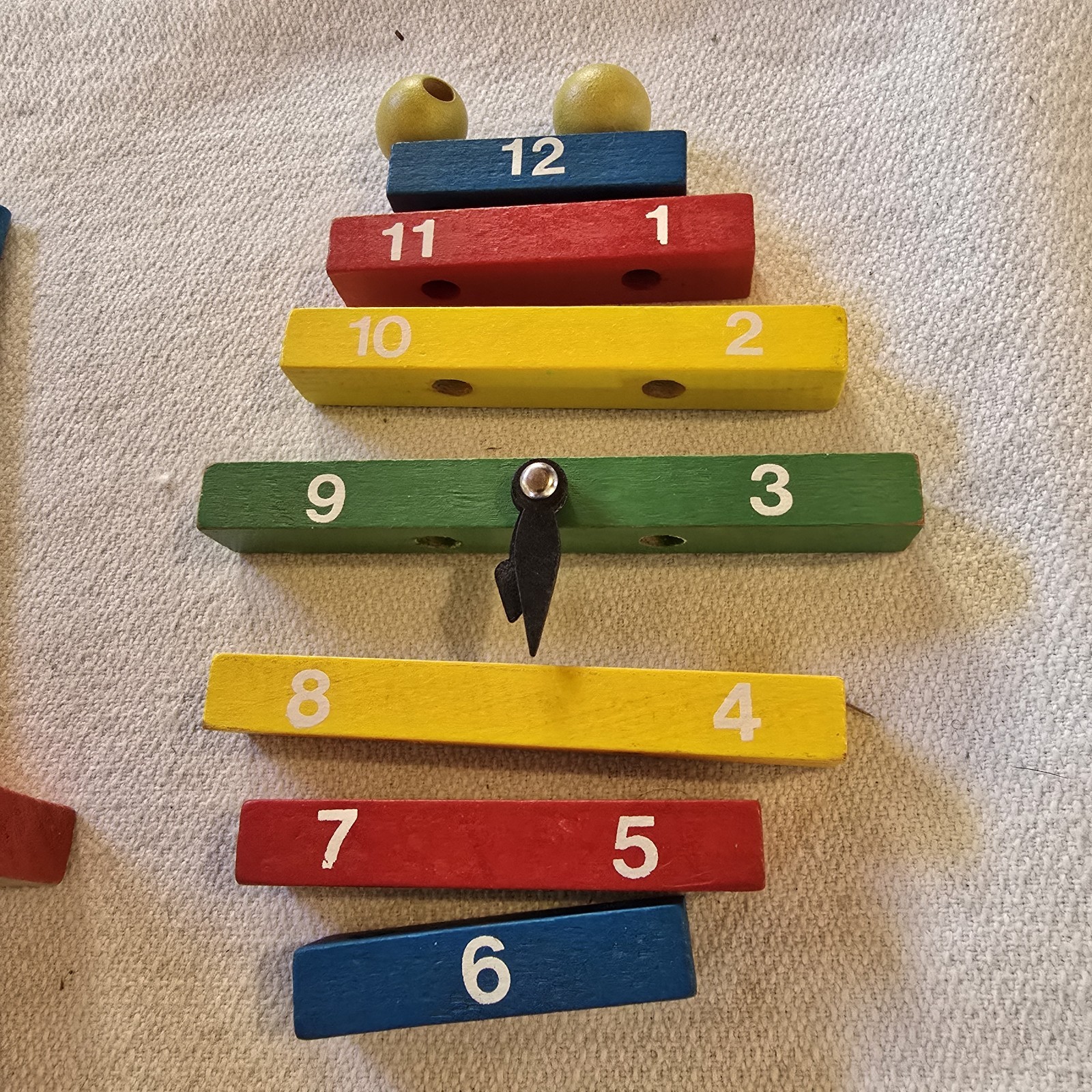 Vintage Wooden Kids Learning Clock Toy with Abacus Colorful Number Puzzle ...