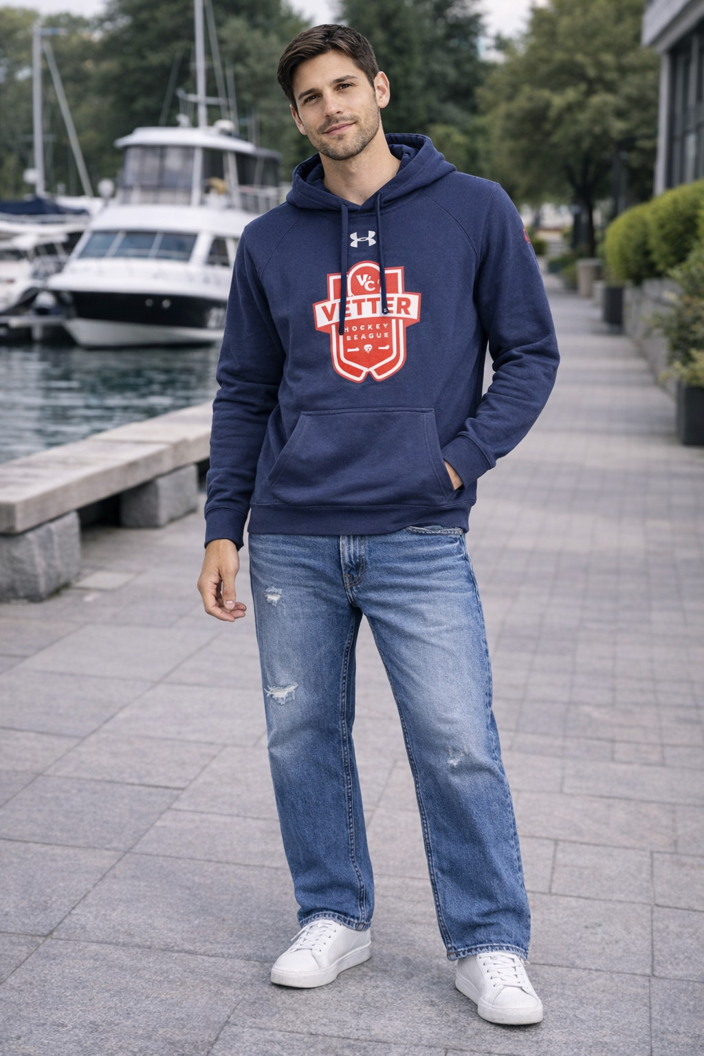 Under Armour Rival Fleece Hoodie Men s L Navy Blue Full Zip Athletic VGC