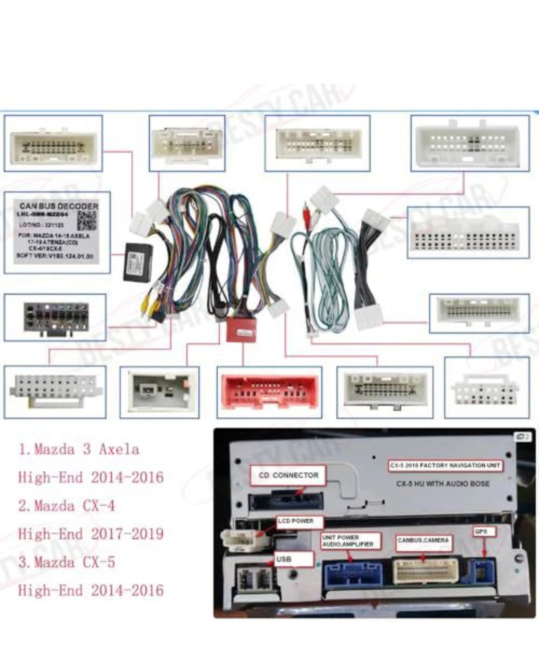 • 16pin Car Stereo Radio Power Retrofit Wiring Harness Adatper fits for Mazda