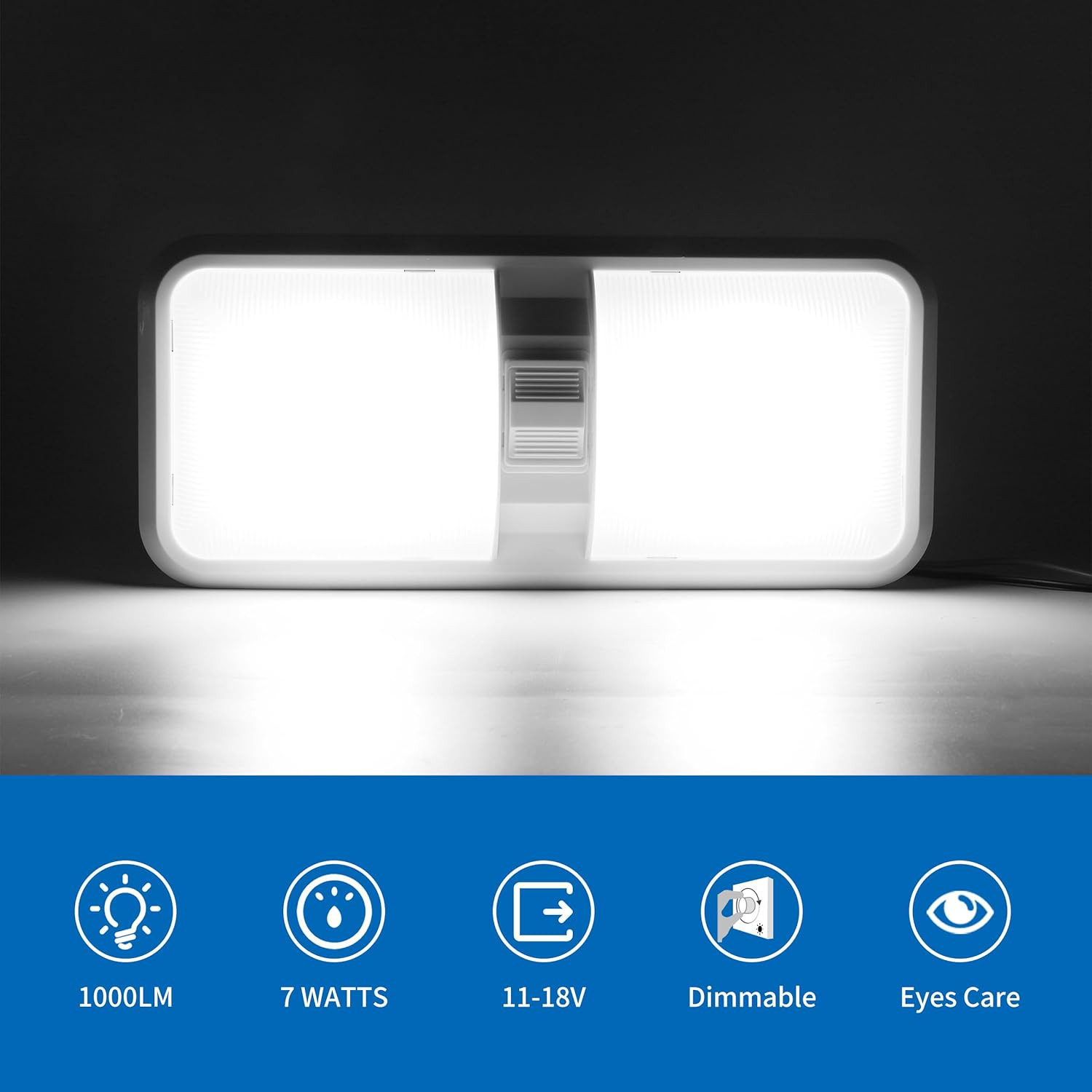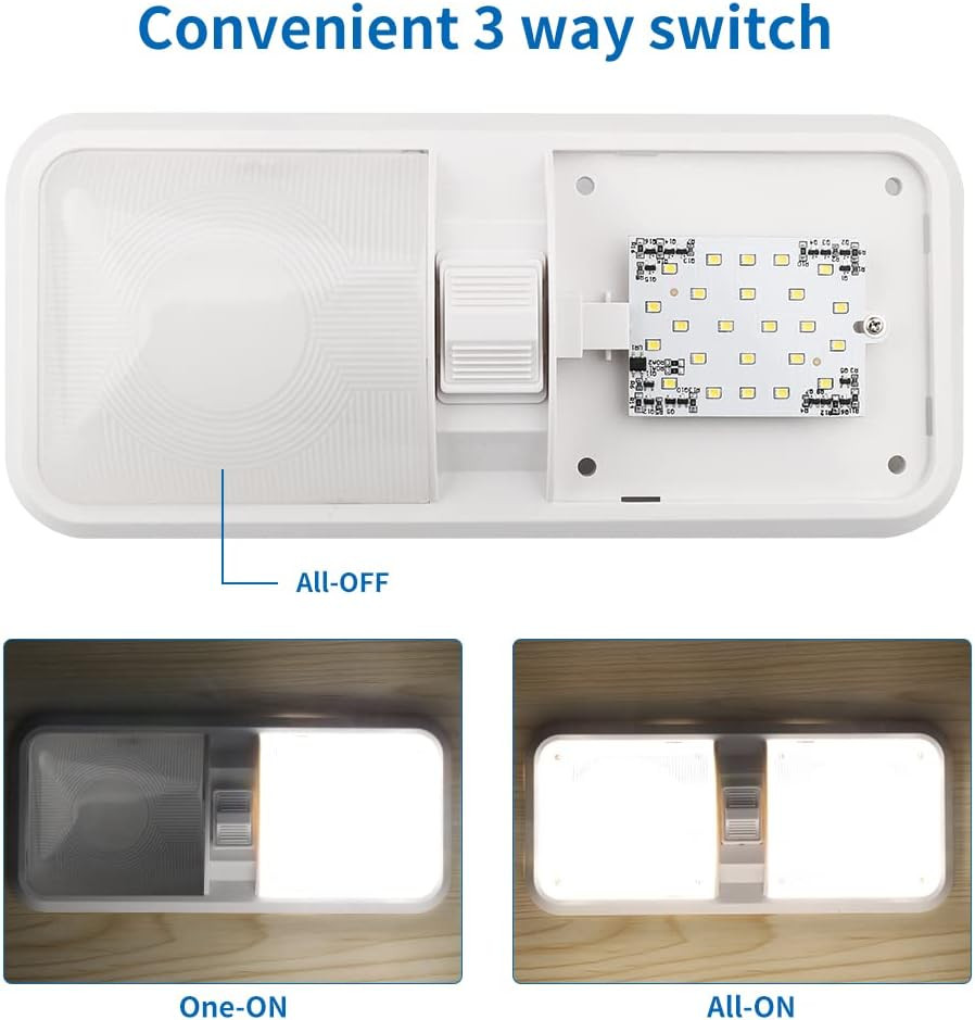 RV Interior Natural White 12V LED Ceiling Double Dome Light Fixture 1100 LM Fros