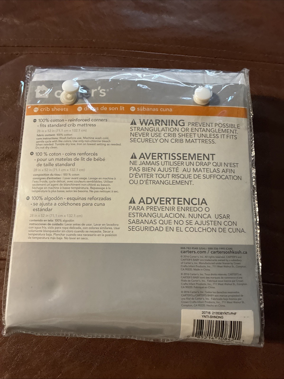 Carter's Solid White Cotton Sateen Fitted Crib Sheet - 52 x 28 New 100 Cotton
