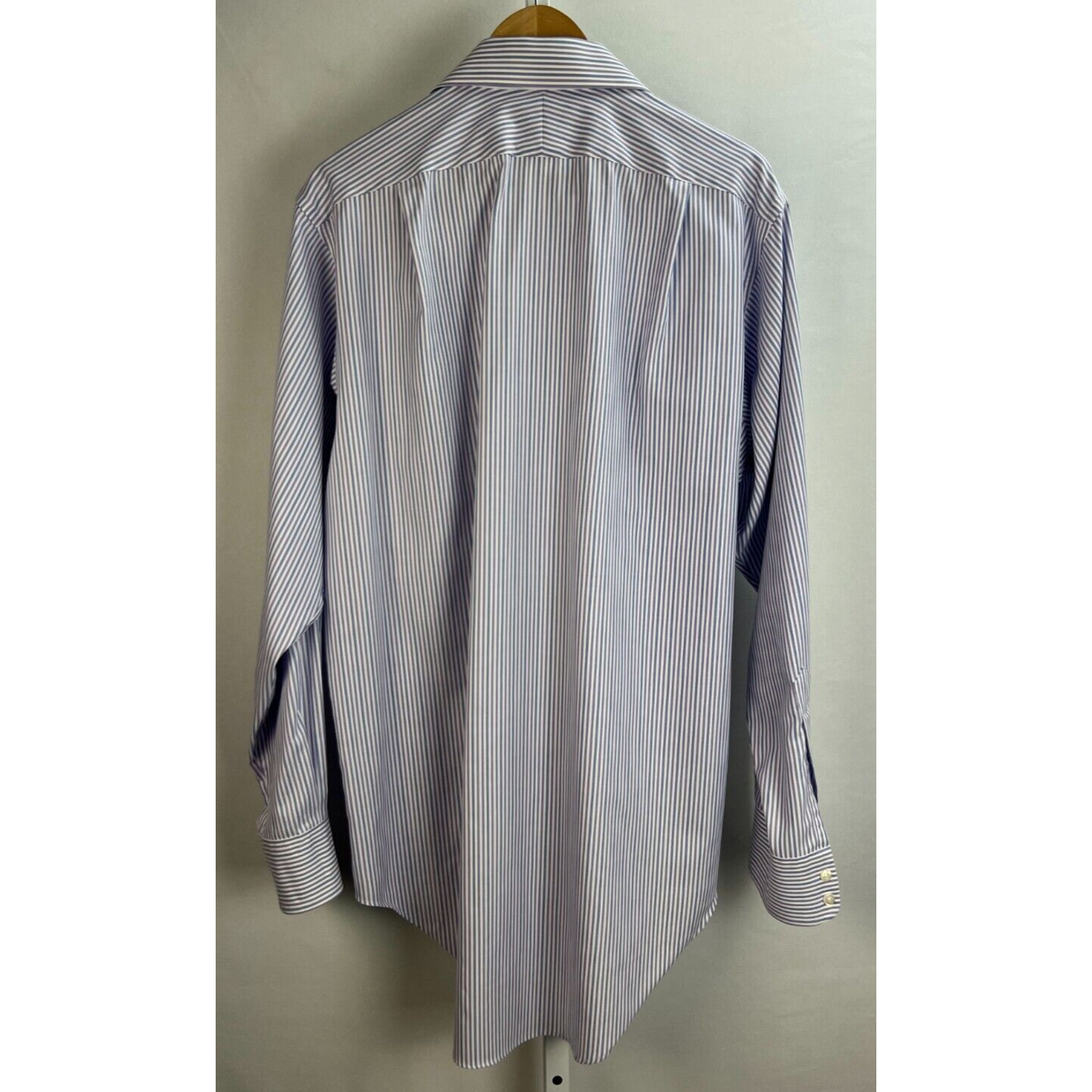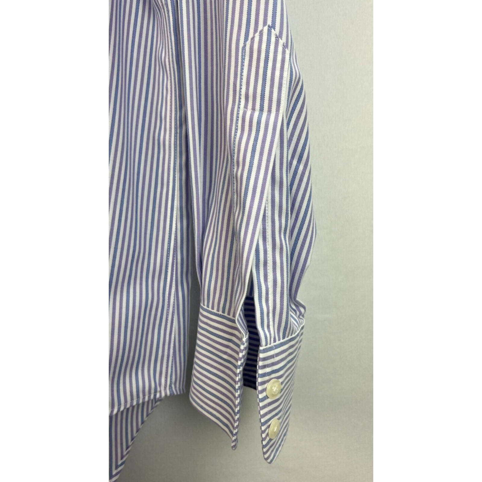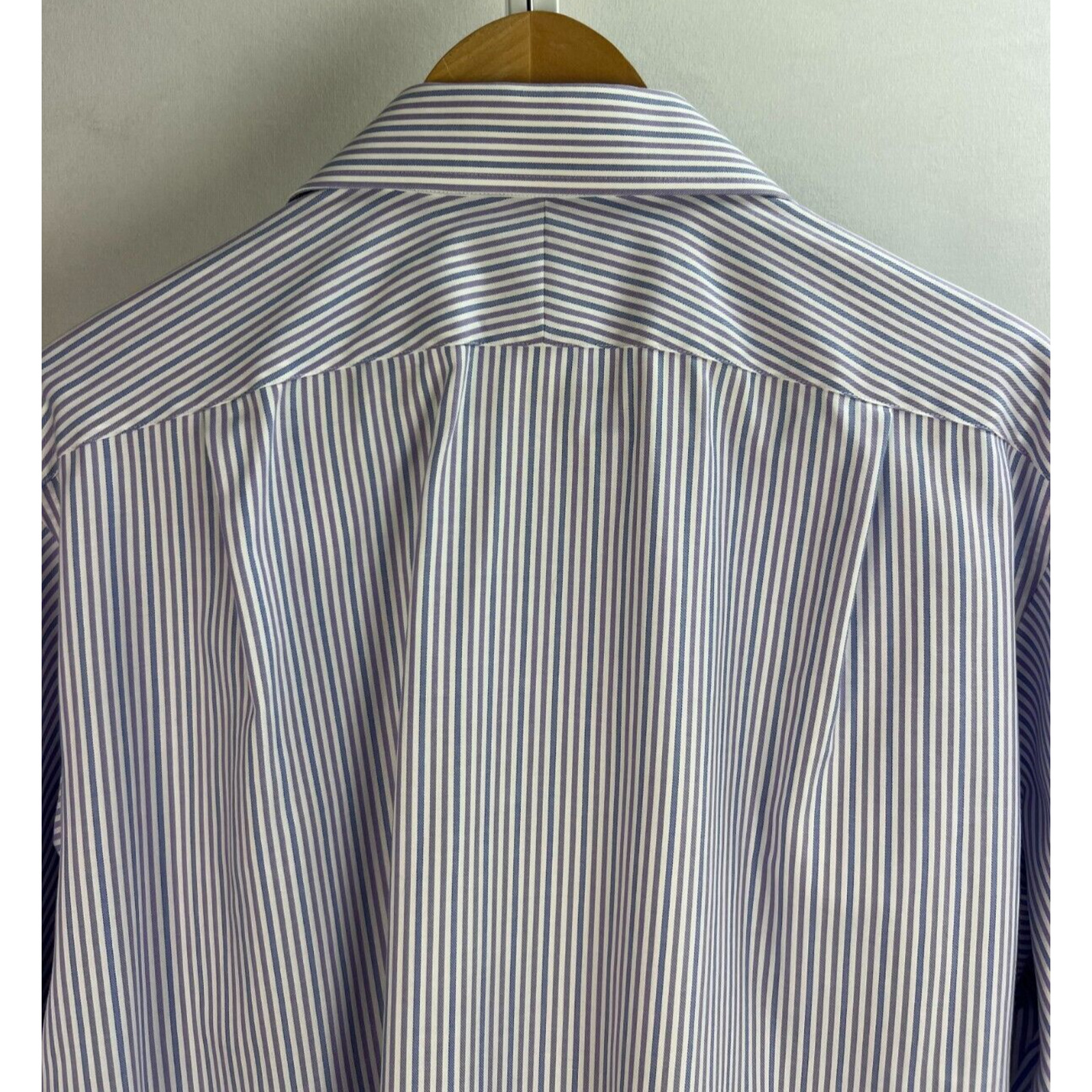 как выглядит T.M. LEWIN Mens Blue/White Striped Cotton Button Down Slim Fit Shirt SZ 16.5/36 фото