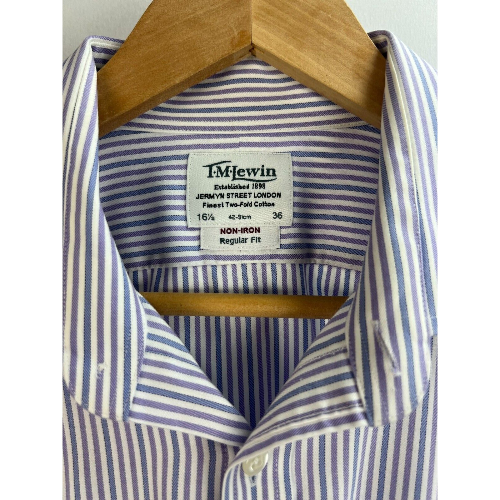 T.M. LEWIN Men's Blue/White Striped Cotton Button Down Slim Fit Shirt SZ 16.5/36