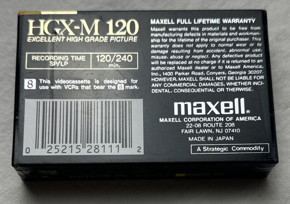 New Sealed Maxell 8mm Videocassette HGX-M Excellent High Grade Picture P6-120 8