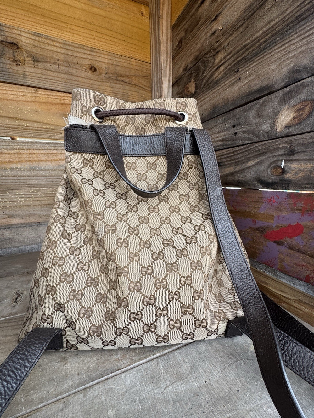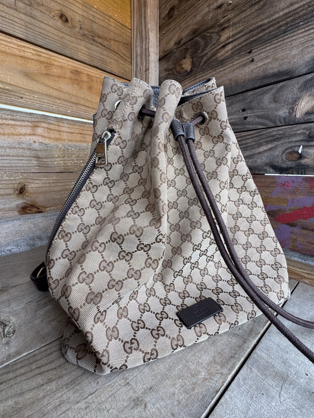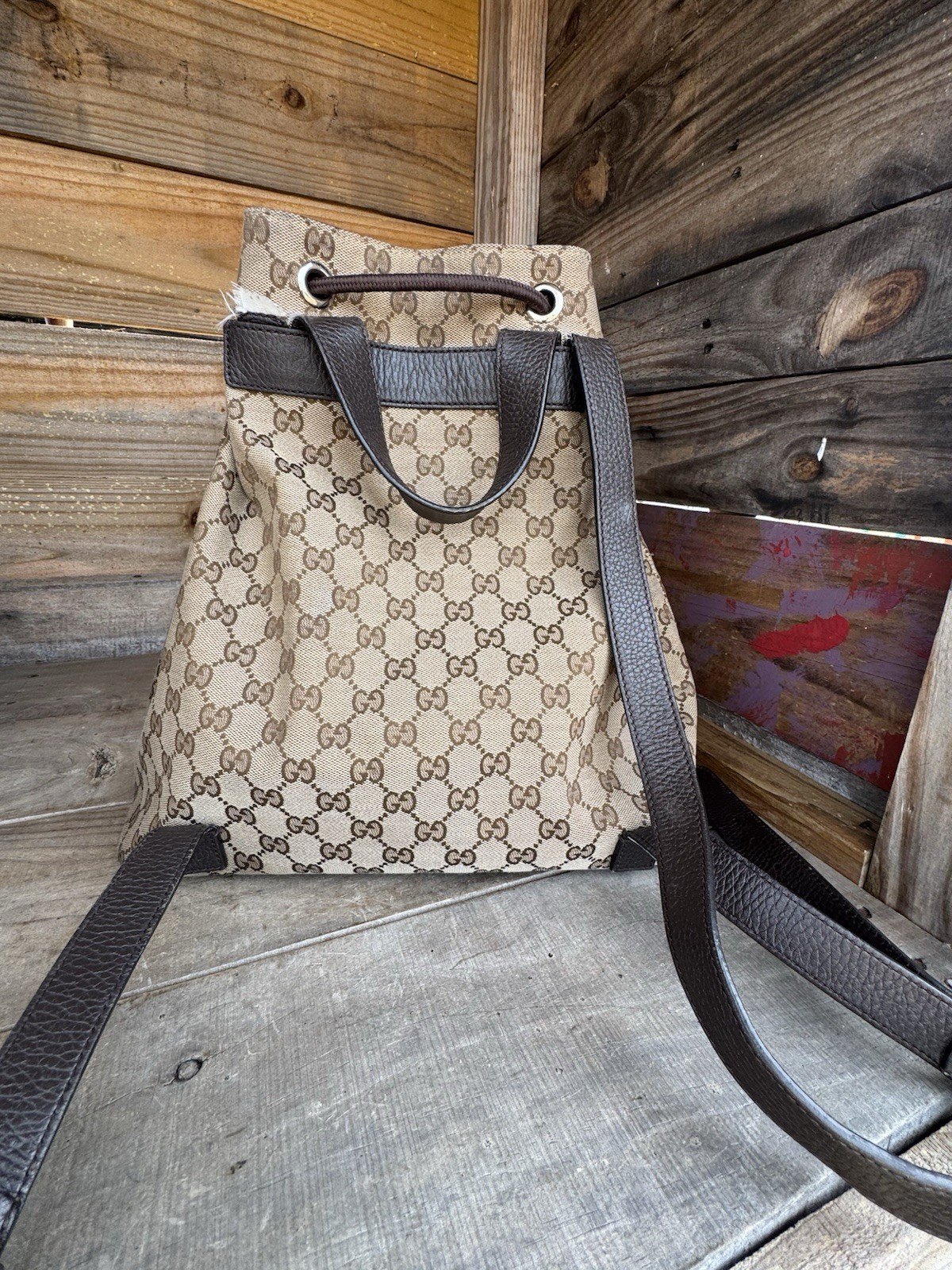 Gucci Drawstring GG Monogram Canvas Backpack READ