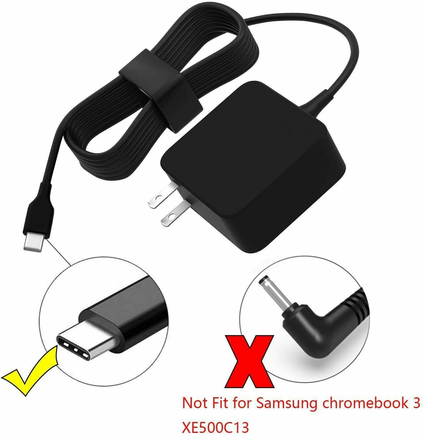 как выглядит 45W USB C Charger for Asus Samsung Chromebook Laptop Power Supply Adapter Cord фото