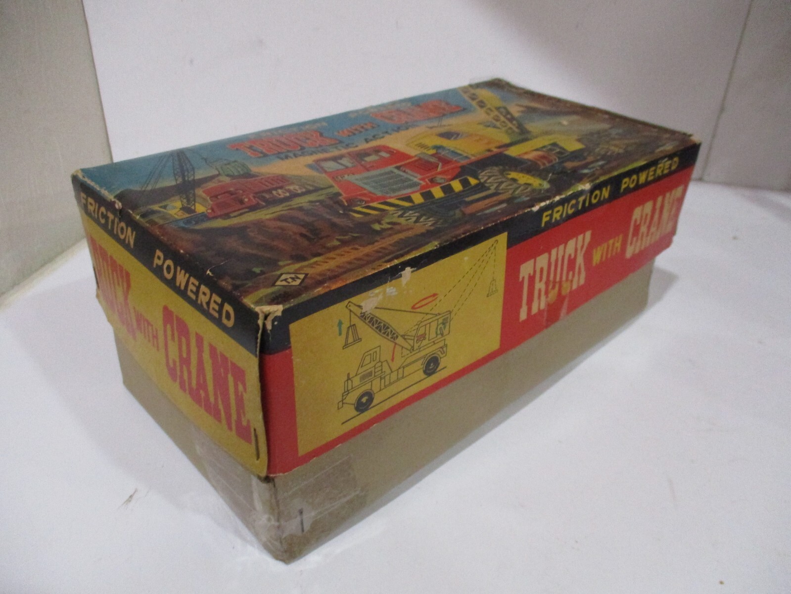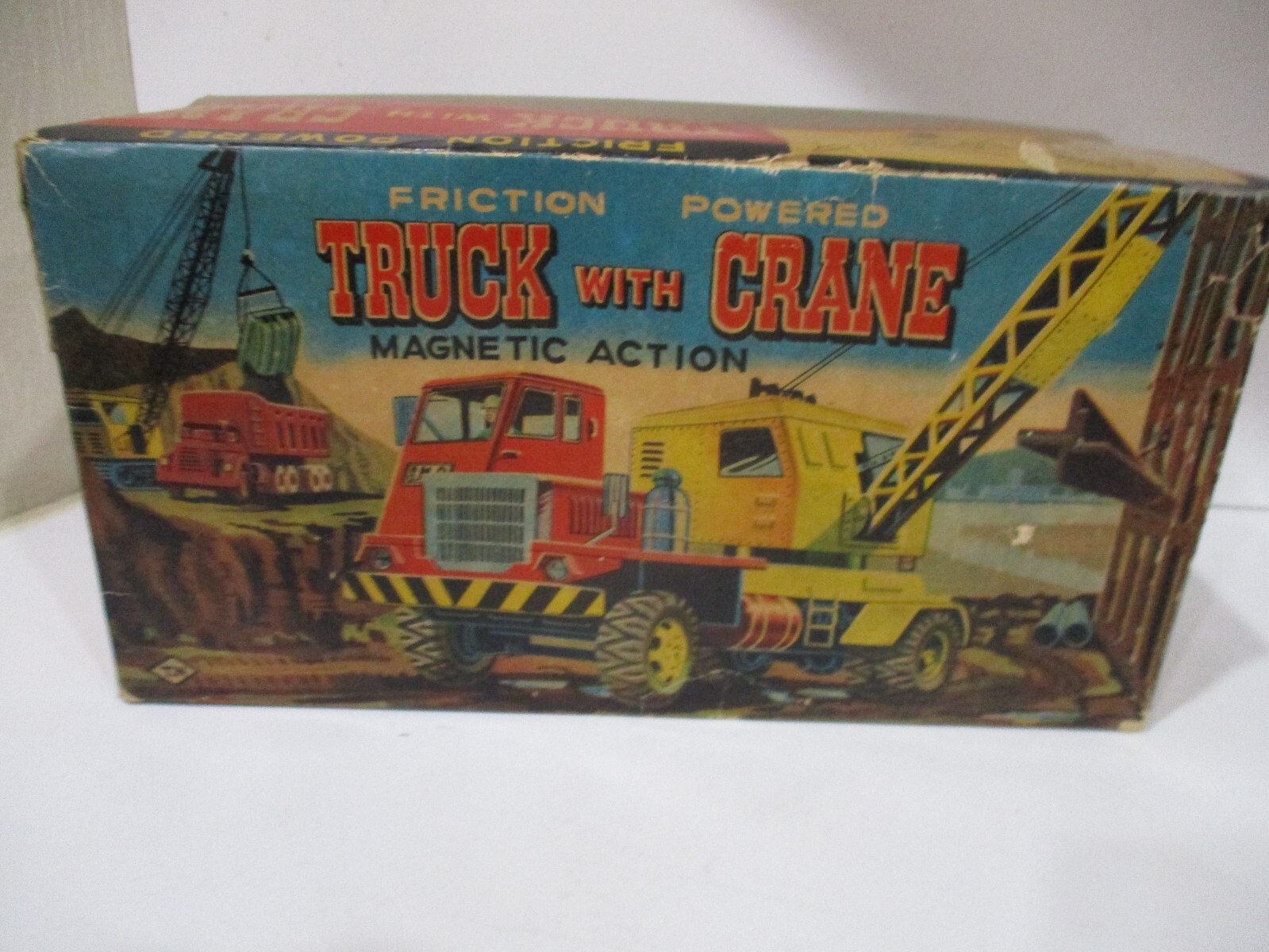 Crane Truck with Magnetic Pickup-Friction Mint N Box All tin -Japan-