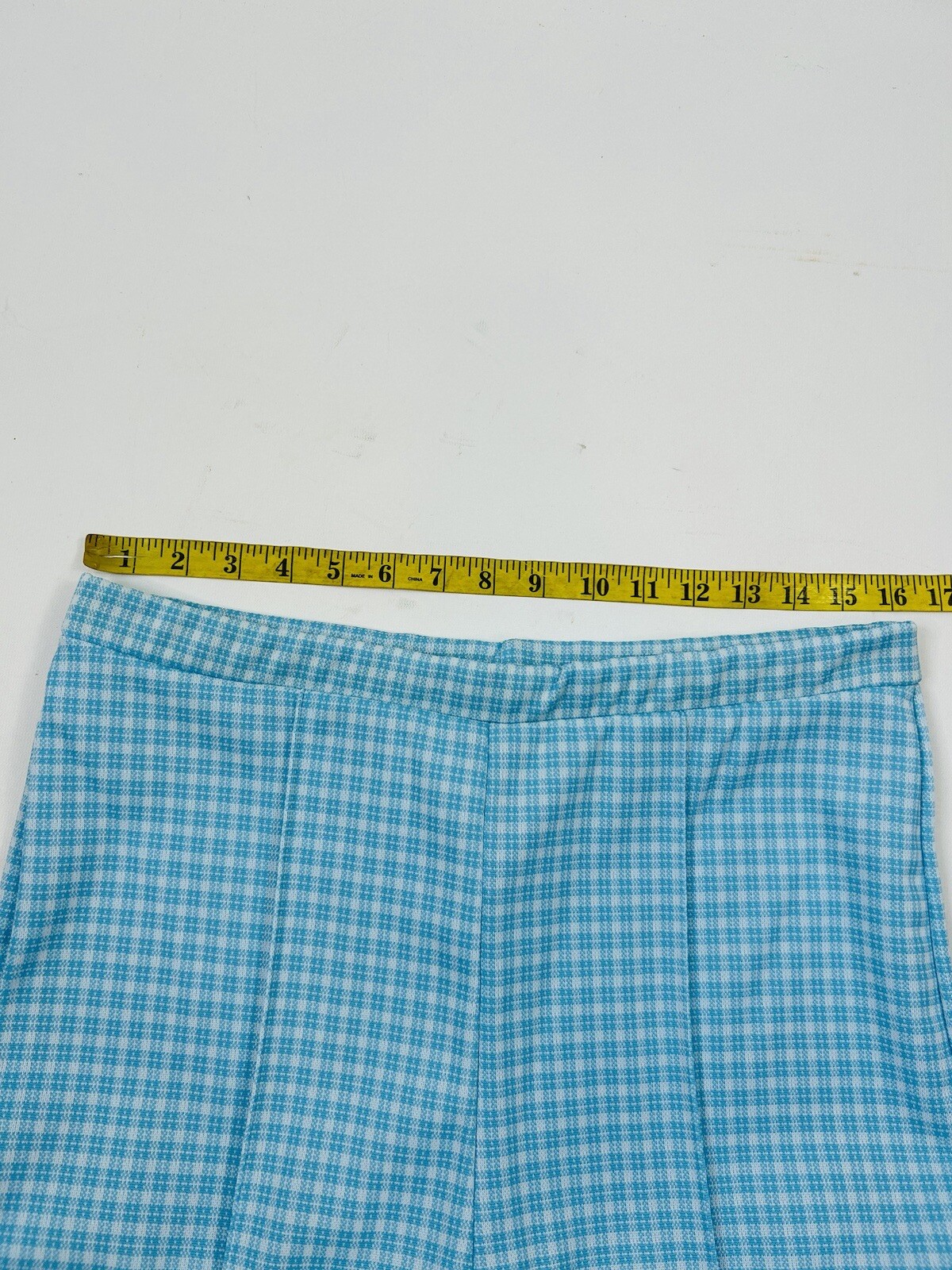 Vintag 70s Womens 16 Large Gingham Plaid Knit High Rise Wide Leg Pants USA Prep