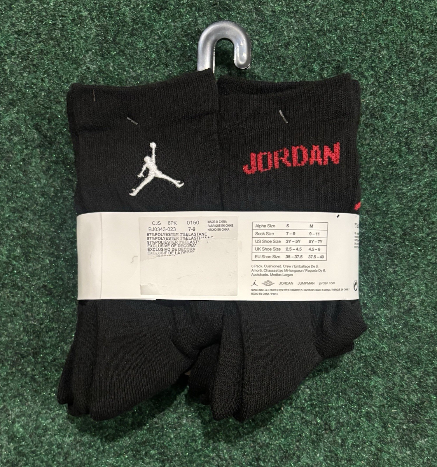 New Jordan Legend Crew Socks 6 Pack Size Women 4-6 Youth 3Y-5Y NWT