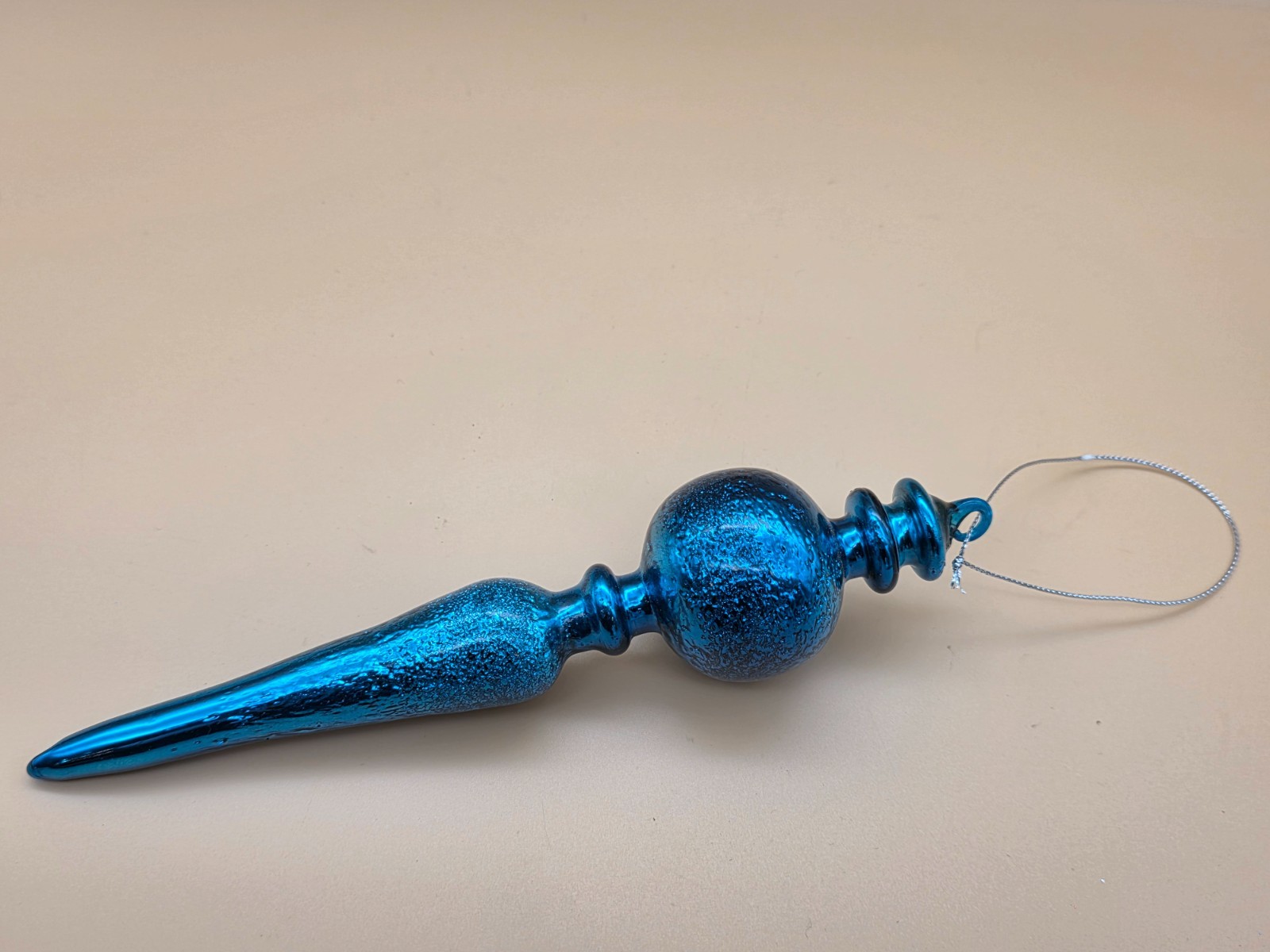 Christmas Blue Textured Like Glass 8" Finial Ornament