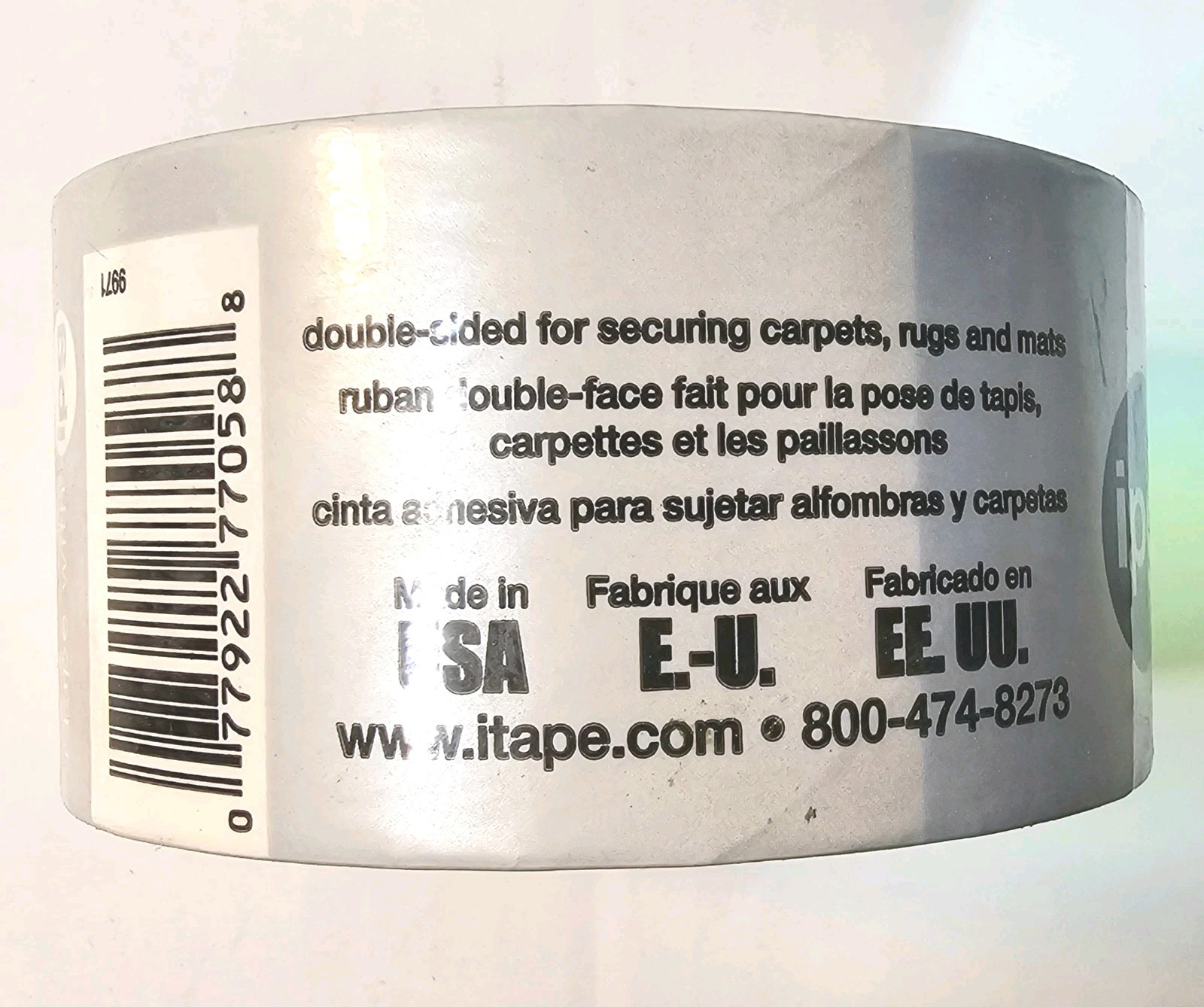 Double-Sided Indoor Carpet Tape, 1.88in.W x 10yd.L Roll, Pack of 7 rolls, NEW