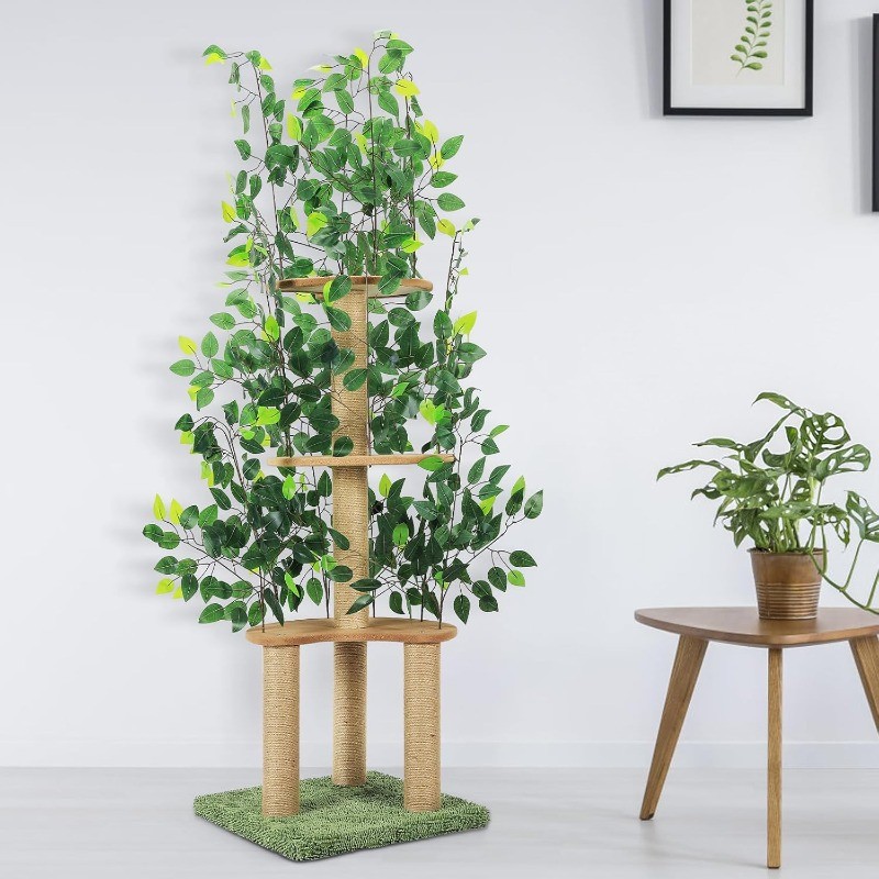 как выглядит 60in Tall Cat Tower with Leaves, Cat Tree w/Scratching Post for Climbing, Hiding фото