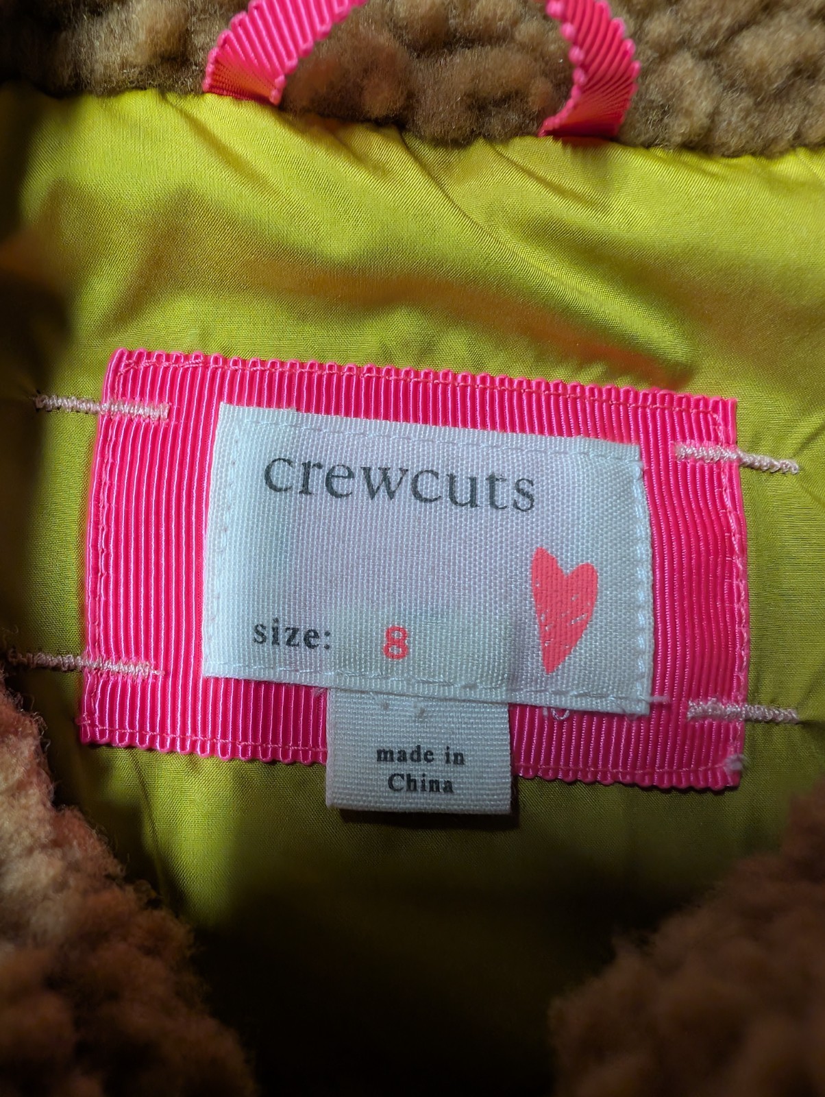 Kids CREWCUTS brown color block zipper vest Sz. 12 sleeveless sherpa outerwear
