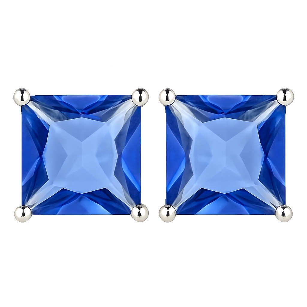 как выглядит 925 Sterling Silver Princess Cut 1.9 Ct Blue Sapphire CZ Dangle Earrings Studs фото