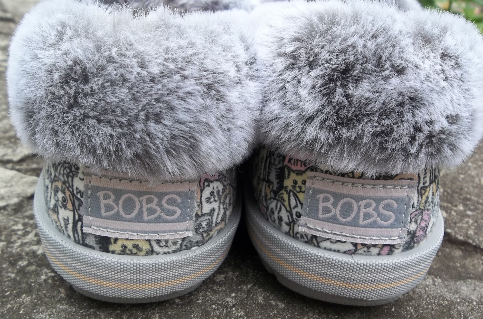 как выглядит NWT Skechers Bobs Too Cozy Purrfect Storm 8M Cats Faux Fur Trim Memory Foam фото