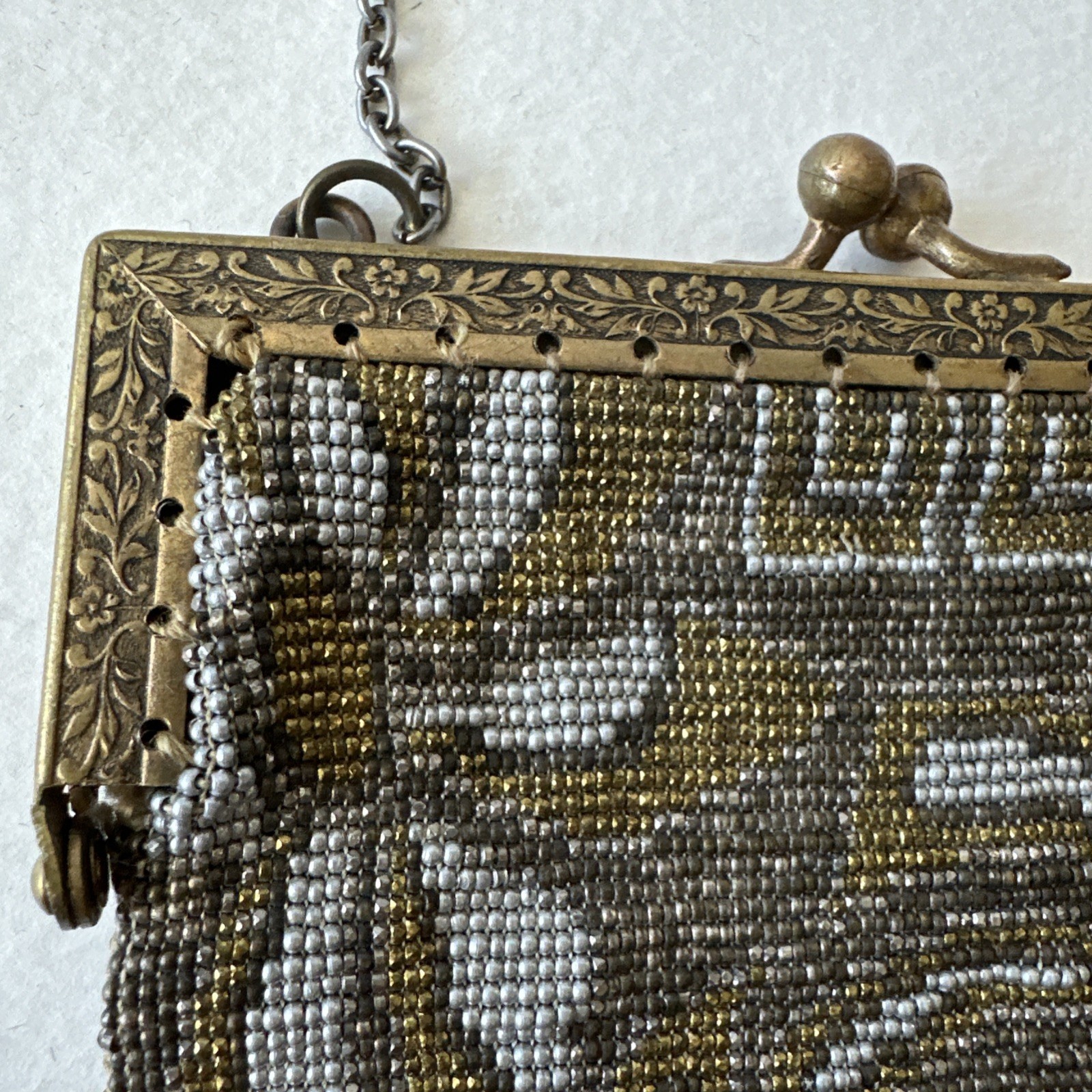 как выглядит antique French Micro beaded purse Gold Silver Tones Fringe Evening Flapper фото