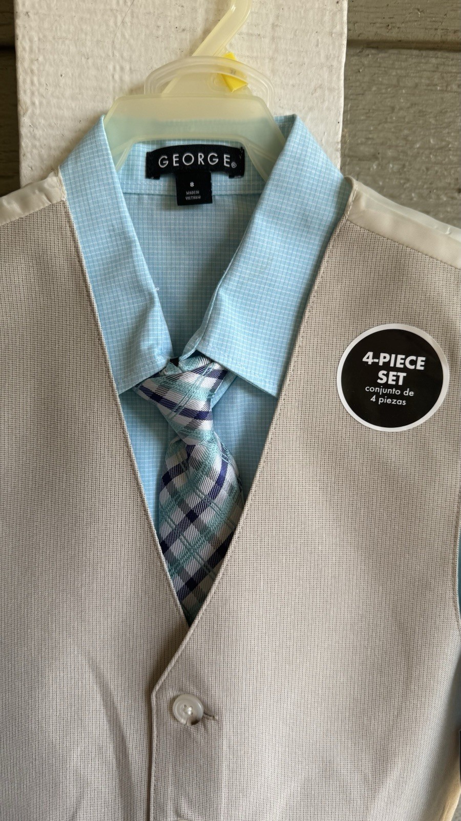 George Boys Size 8 Dressy Wear Suit 4 Pc. Set Shirt, Pants, Vest And Tie NWT
