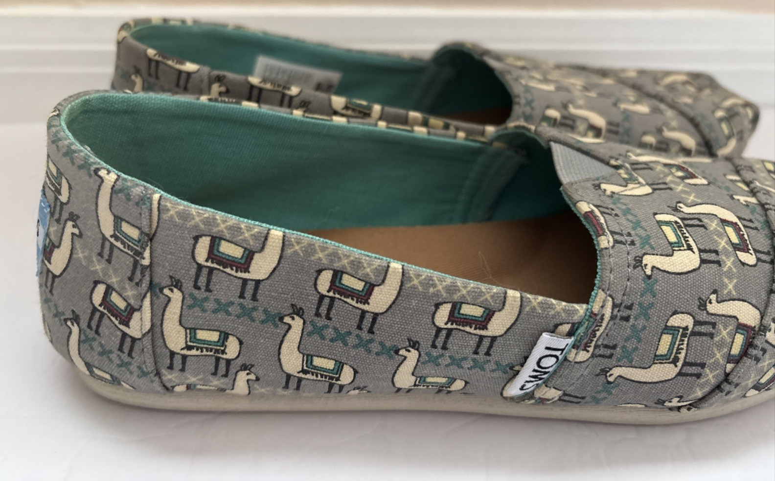 TOMS Alpargata Lovable Llama Print Gray Turquoise Flats Shoes Momma Size 8