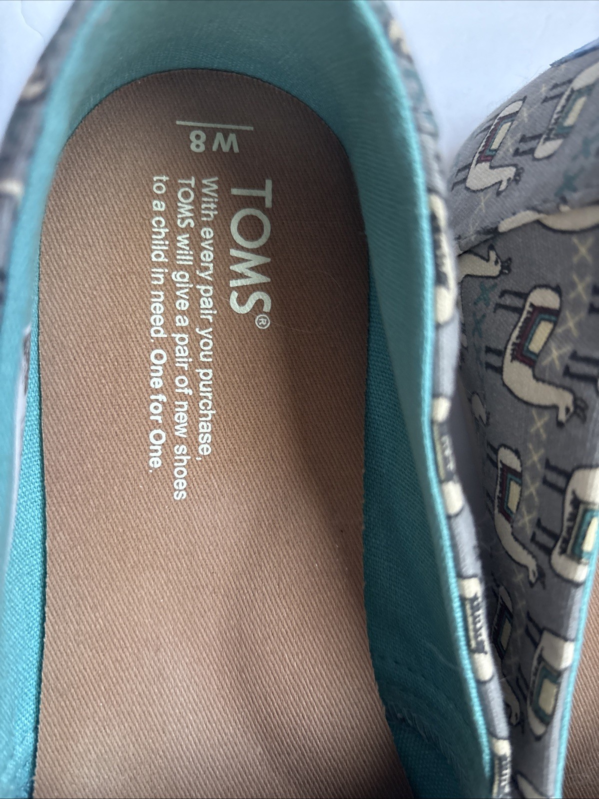 как выглядит TOMS Alpargata Lovable Llama Print Gray Turquoise Flats Shoes Momma Size 8 фото