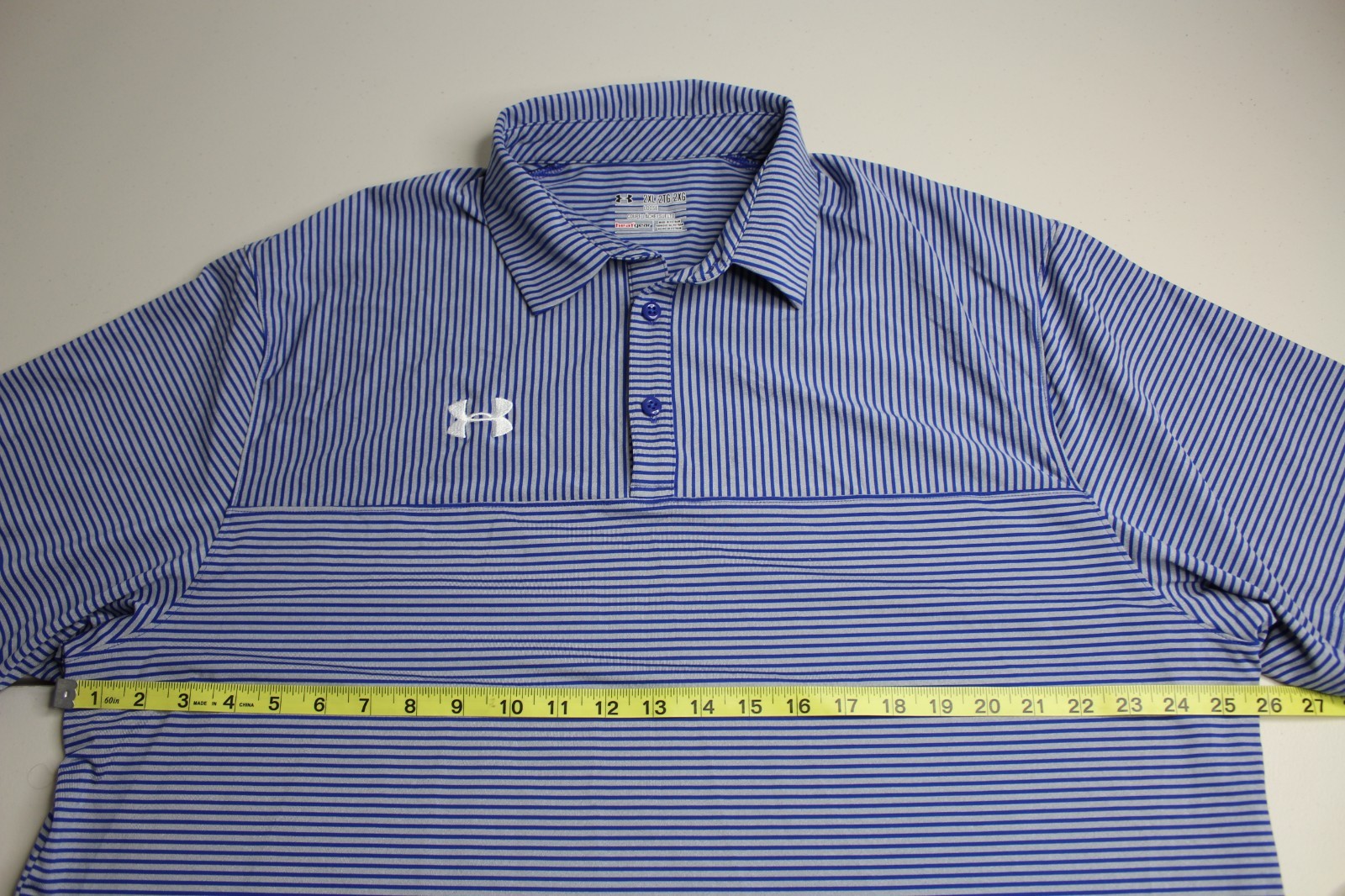 как выглядит Mens 2XL XXL UA Under Armour Loose Heatgear Golf Polo Short Sleeve Shirt Striped фото