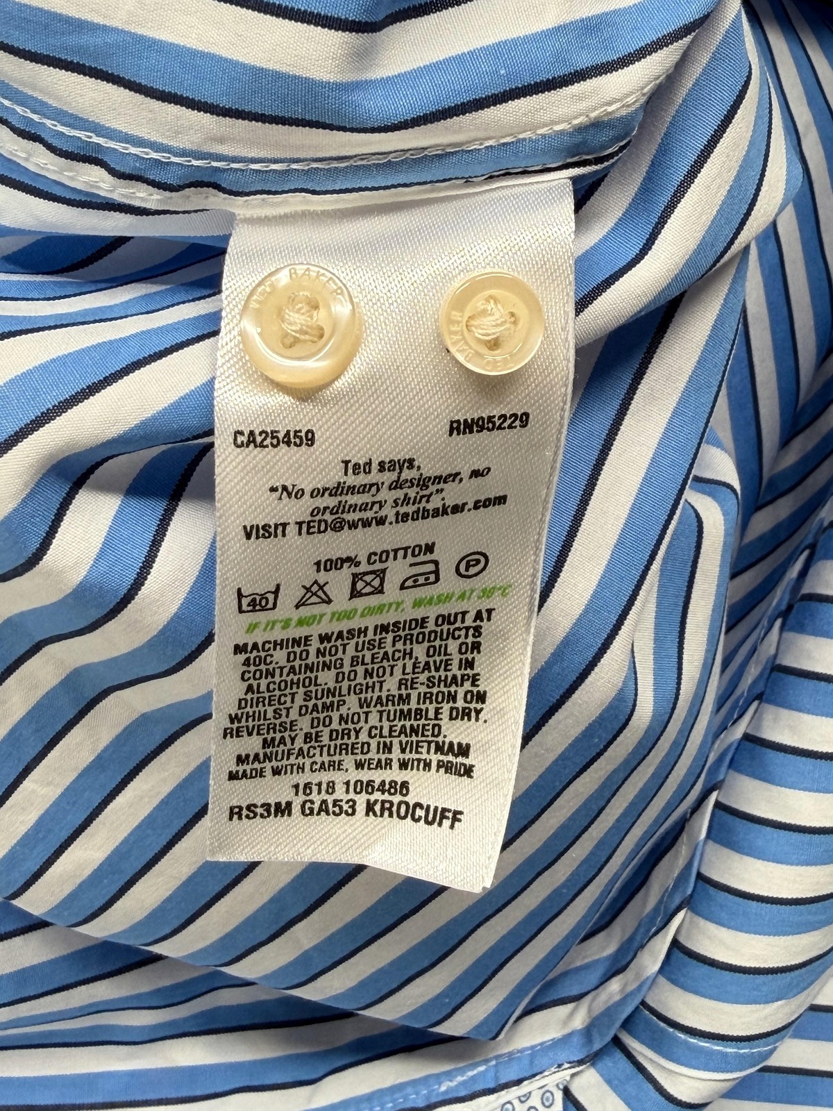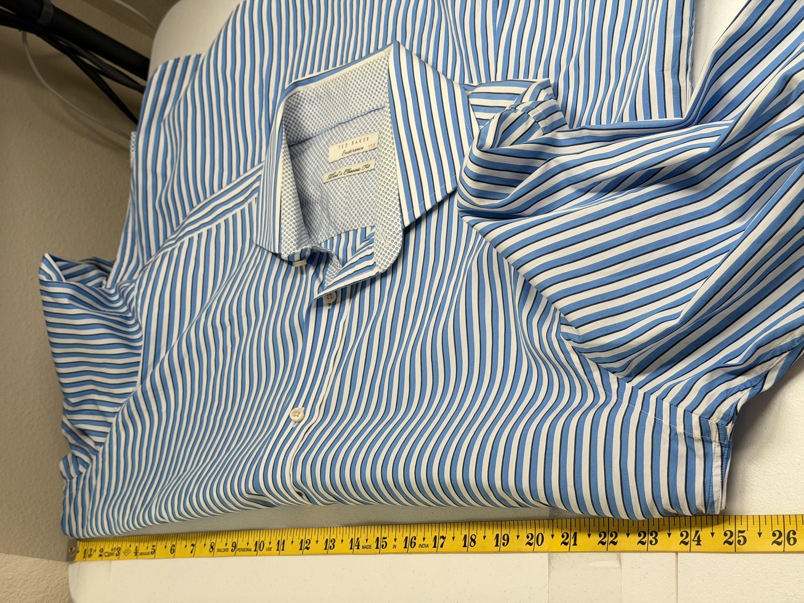 как выглядит Ted Baker Shirt Mens 17.5 Blue White Stripe Endurance Classic Fit Dress Preppy фото
