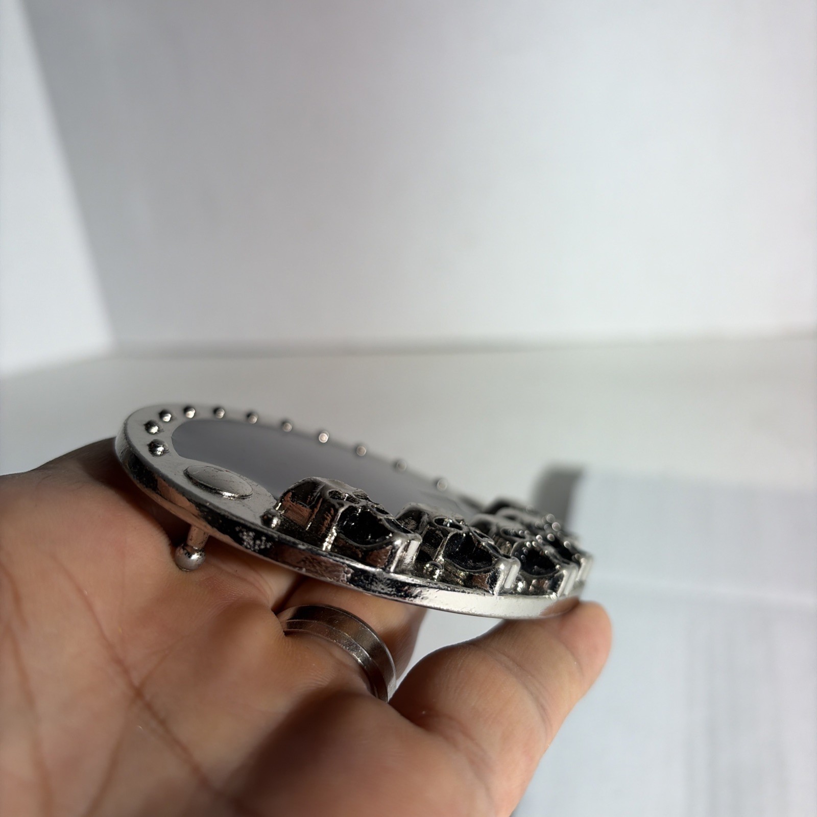 как выглядит Oval 3D Skull Head Belt Buckle Black Silver Tone Metal Motorcycle Riding Wear фото
