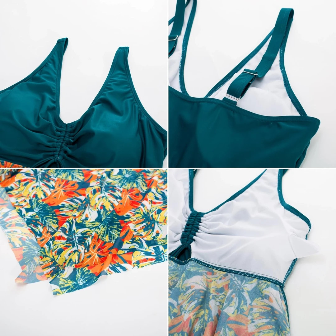 Hanna Nikole Two Piece Tummy Control Swimdress Floral Design UK32 Plus