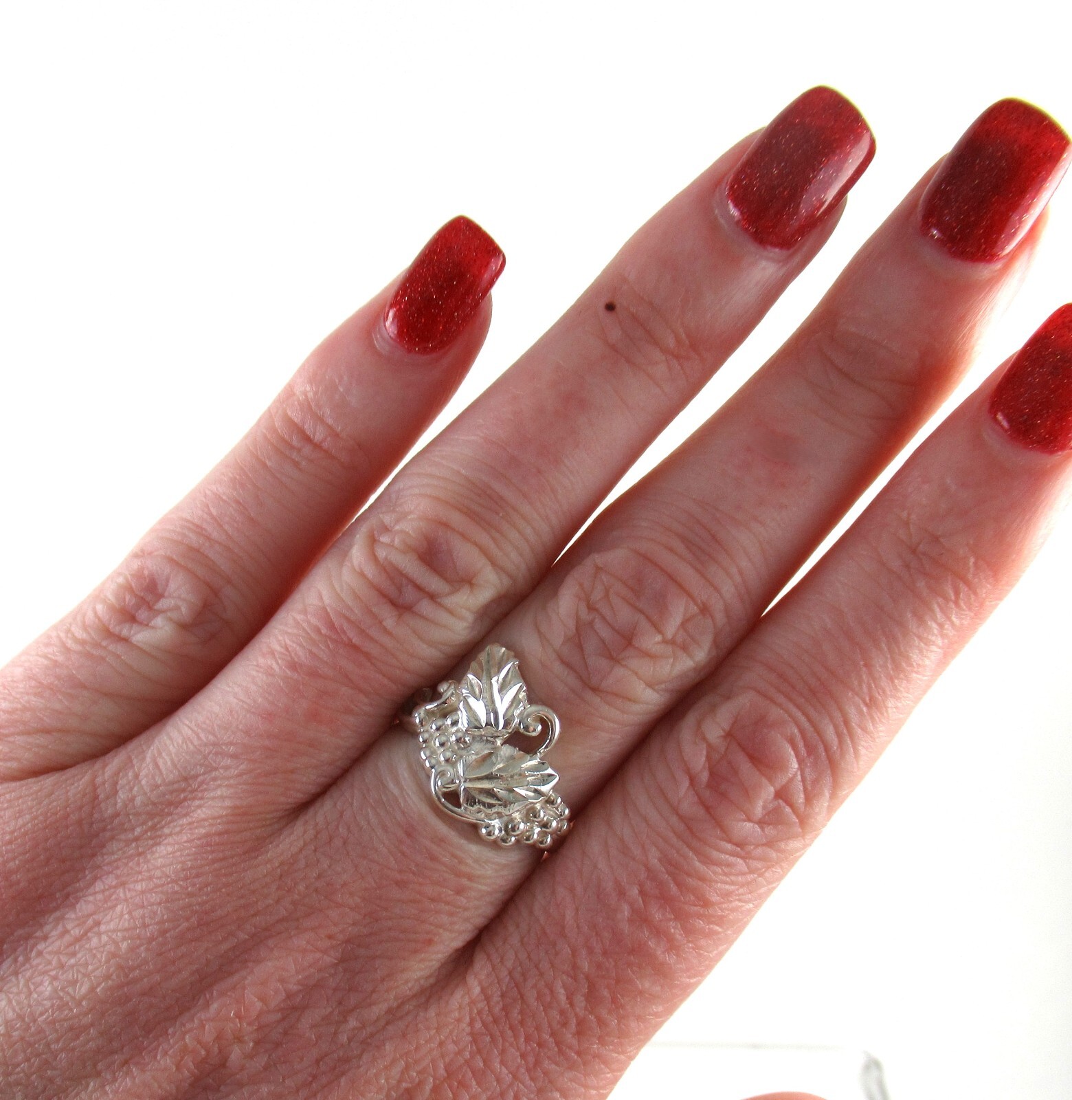 как выглядит Vintage .925 Sterling Silver Grape Leaf Ring Bright Cut Shiny size 6.75 фото