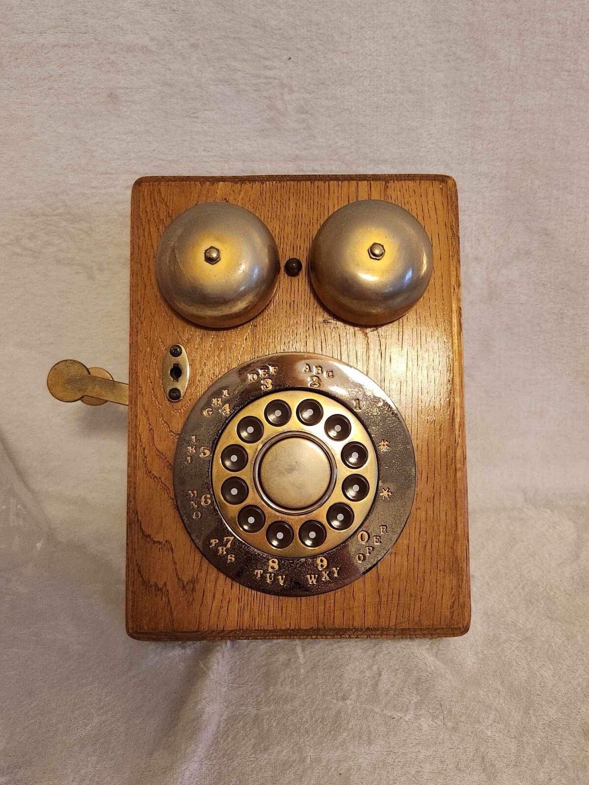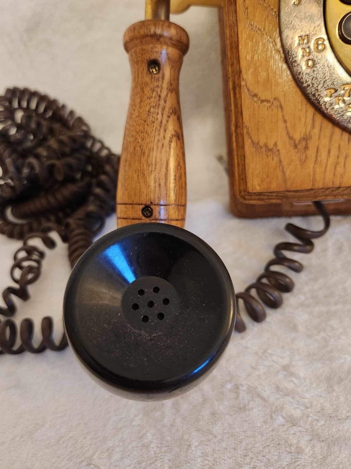 как выглядит Teleconcepts Country Talk Antique Wall Crank Phone Wood And Brass 559146 Works фото