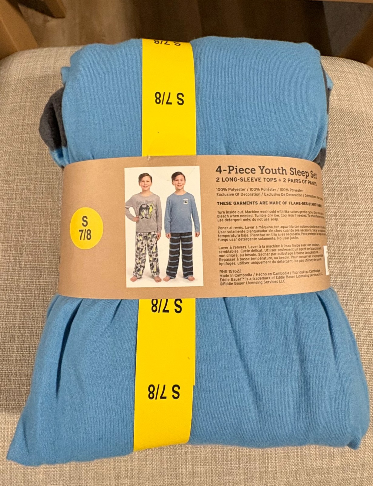 NEW Eddie Bauer Youth Kid's 4 Piece Long Sleeve PJ Sleep Set Small 7/8 NWT NEW