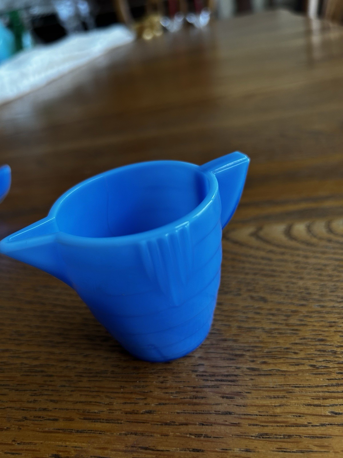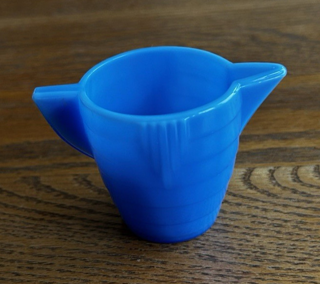 как выглядит AKRO AGATE CHILDS PITCHER CONCENTRIC RIB STACKED PANEL TEA SET 1930s BLUE фото