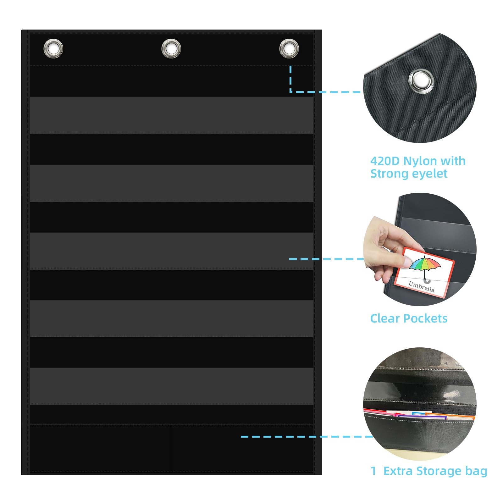5 1 Pockets Standard Pocket Chart, Clear 5 Pockets, Extra Storage, School Home