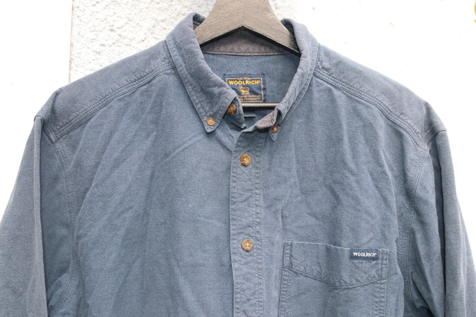 как выглядит VTG 80s Woolrich Button Down Longsleeve Shirt Sz XL Mens Blue Chamois Chambray фото
