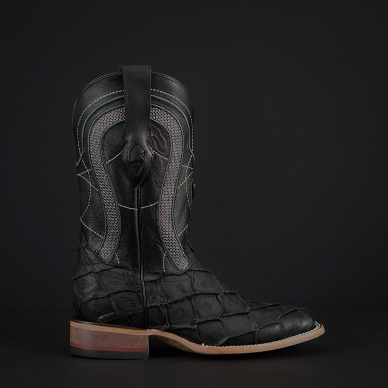MENS WESTERN COWBOY NATURAL PIRARU BLACK EXOTIC LEATHER BOTAS VAQUERAS STYLE 080